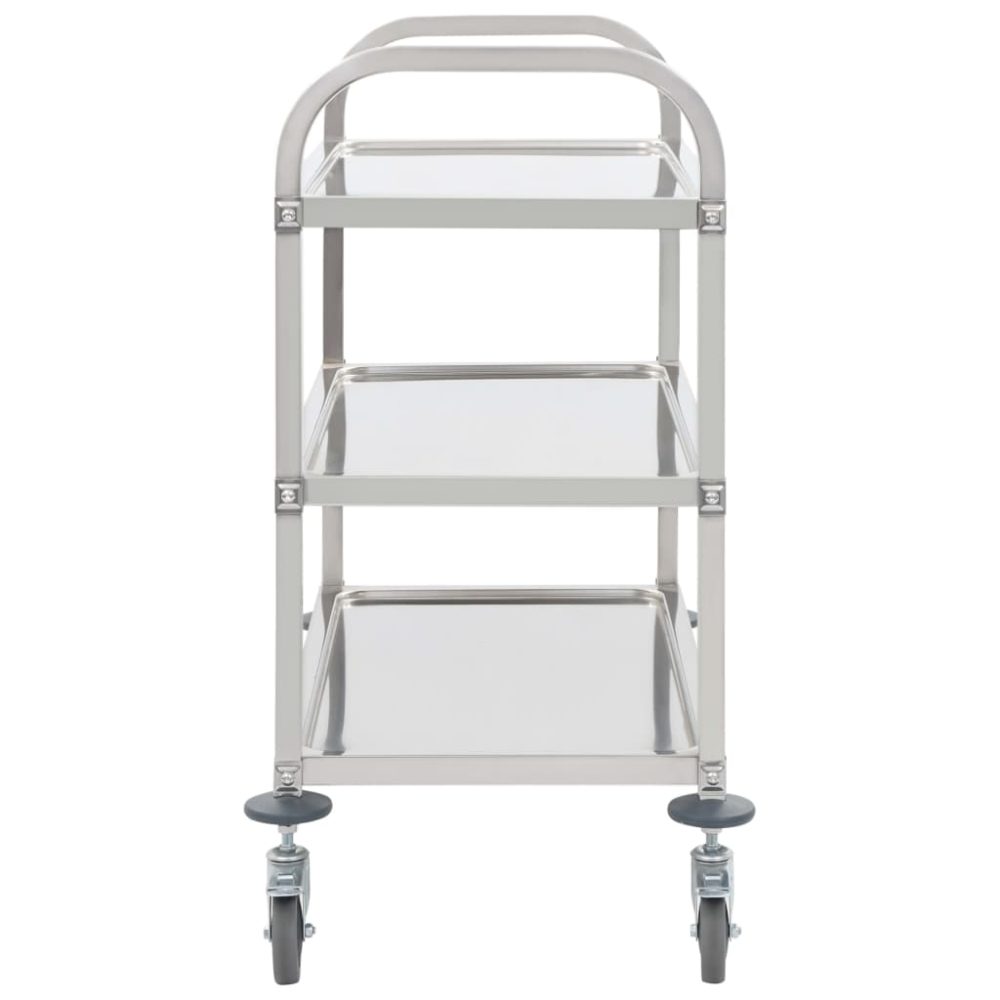 As espaçosas bandejas fornecem um amplo espaço para a apresentação ideal da comida e das bebidas. A estrutura de aço inoxidável mantém o carrinho de cozinha estável e robusto, inclusive quando com a carga máxima. Graças às rodas que rodam suavemente, o carrinho pode ser deslocado sem grande esforço e com muita tranquilidade. Duas das rodas possuem travões para impedir que o carrinho se desloque acidentalmente, o que significa que também pode utilizá-lo para guardar ferramentas, entre outros produtos utilizados diariamente em sua casa.