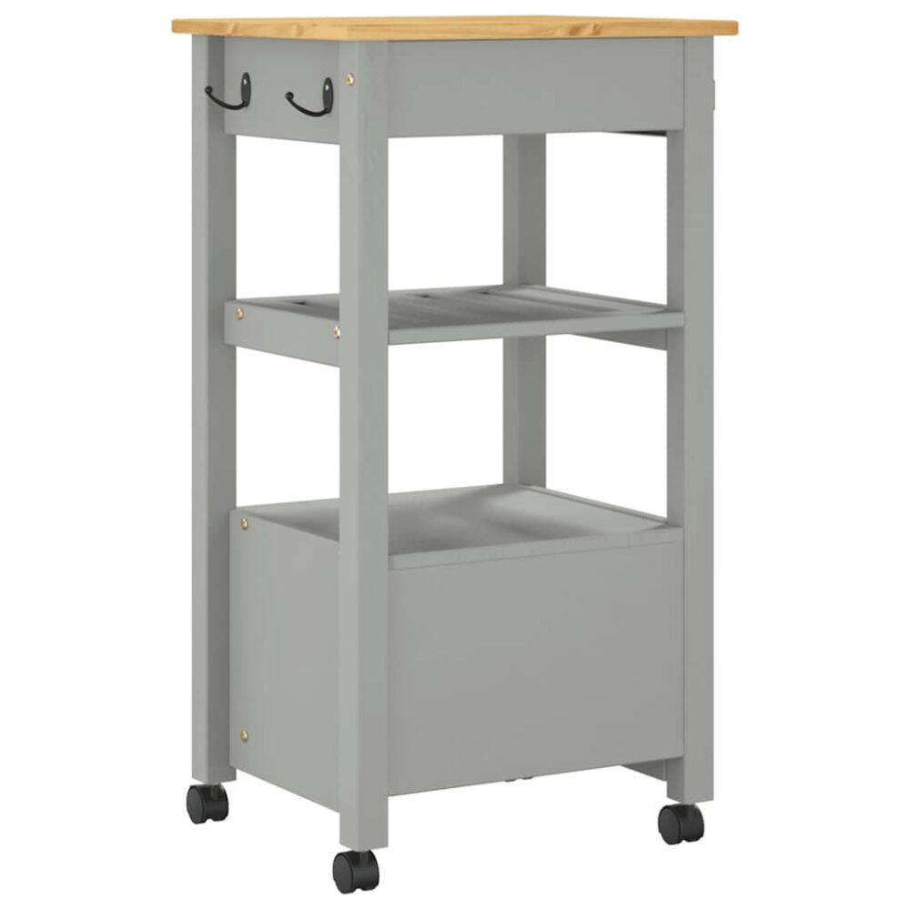 Crie um toque vintage distinto e adicione mais espaço de arrumação à sua cozinha com este carrinho de cozinha em madeira! Material durável: a madeira de pinho maciça é um bonito material natural com um grão reto e nós que lhe conferem o seu caraterístico aspeto rústico. Feito de madeira de pinho maciça, este carrinho de arrumação para cozinha é durável e robusto. Amplo espaço de arrumação: este carrinho para vegetais foi concebido com uma prateleira e 2 gavetas que oferecem um amplo espaço de arrumação para colocar utensílios de cozinha. O suporte de madeira e os ganchos de metal na lateral permitem-lhe manter as suas coisas à mão. Fácil de deslocar: este carrinho possui 4 rodas, sendo que 2 delas são bloqueáveis, permitindo-lhe deslocar o carrinho flexivelmente e estacioná-lo de forma estável a qualquer momento. Amplas aplicações: este carrinho de organização pode ser colocado na cozinha, sala de estar, casa de banho, estúdio e outros locais. Pode utilizá-lo para guardar artigos do dia-a-dia, especiarias, artigos de higiene pessoal, livros e outros artigos para manter a sua casa limpa.