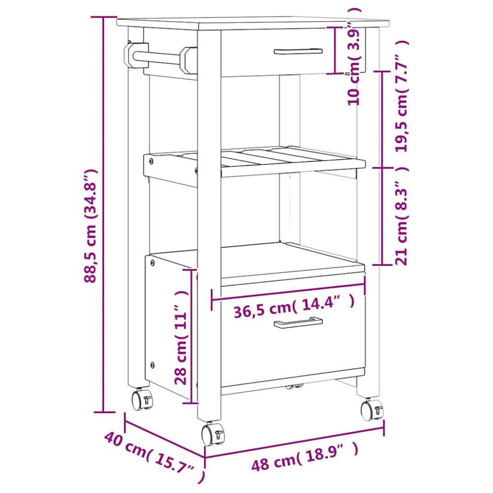Crie um toque vintage distinto e adicione mais espaço de arrumação à sua cozinha com este carrinho de cozinha em madeira! Material durável: a madeira de pinho maciça é um bonito material natural com um grão reto e nós que lhe conferem o seu caraterístico aspeto rústico. Feito de madeira de pinho maciça, este carrinho de arrumação para cozinha é durável e robusto. Amplo espaço de arrumação: este carrinho para vegetais foi concebido com uma prateleira e 2 gavetas que oferecem um amplo espaço de arrumação para colocar utensílios de cozinha. O suporte de madeira e os ganchos de metal na lateral permitem-lhe manter as suas coisas à mão. Fácil de deslocar: este carrinho possui 4 rodas, sendo que 2…