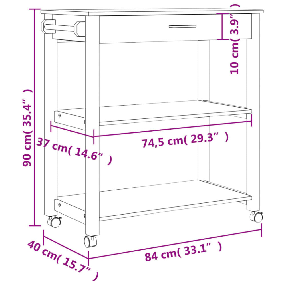 Carrinho de cozinha MONZA 84x40x90 cm madeira de pinho maciça - PORTES GRÁTIS