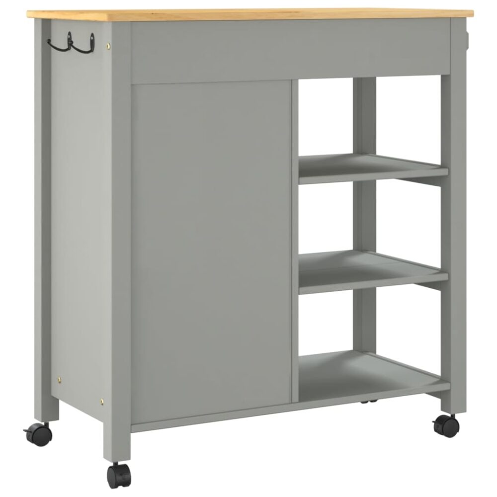 Crie um toque vintage distinto e adicione mais espaço de arrumação à sua cozinha com este carrinho de cozinha em madeira! Material durável: a madeira de pinho maciça é um bonito material natural com um grão reto e nós que lhe conferem o seu caraterístico aspeto rústico. Feito de madeira de pinho maciça, este carrinho de arrumação para cozinha é durável e robusto. Amplo espaço de arrumação: este carrinho para vegetais foi concebido com 4 gavetas e 3 prateleiras abertas que oferecem um amplo espaço de arrumação para colocar utensílios de cozinha. O suporte de madeira e os ganchos de metal na lateral permitem-lhe manter as suas coisas à mão. Fácil de deslocar: este carrinho possui 4 rodas, sendo que…