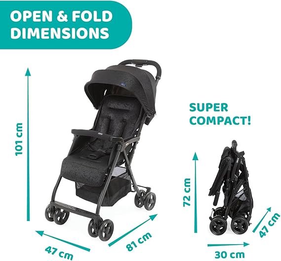 • Fecho compacto: O carrinho pode ser facilmente aberto e fechado com uma mão e fica muito compacto quando fechado.