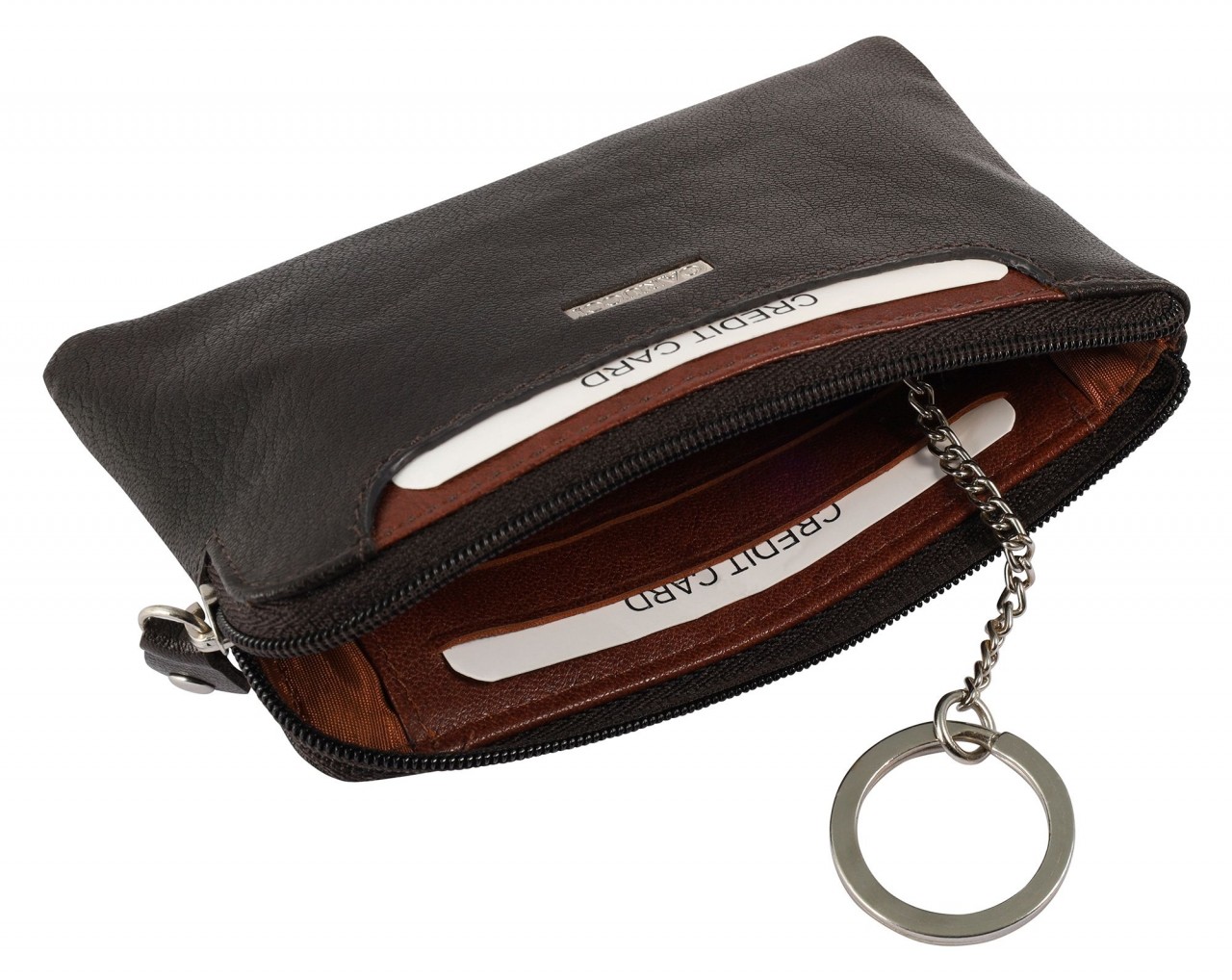 Esta bolsa para chaves de alta qualidade combina funcionalidade e estilo em um design moderno. Feito de couro legítimo, ele não só oferece espaço para suas chaves, mas também para cartões e pequenos itens essenciais – ideal para qualquer lugar. O compartimento principal com zíper oferece espaço suficiente para chaves e pequenos itens essenciais. Um anel integrado com corrente garante que suas chaves fiquem presas com segurança. 4 compartimentos para cartões de crédito dentro 1 corrente de metal com chaveiro 1 bolso externo (frente) 1 bolso externo com zíper (atrás) Compacta, prática e estilosa – esta bolsa para chaves é perfeita para levar em qualquer lugar!