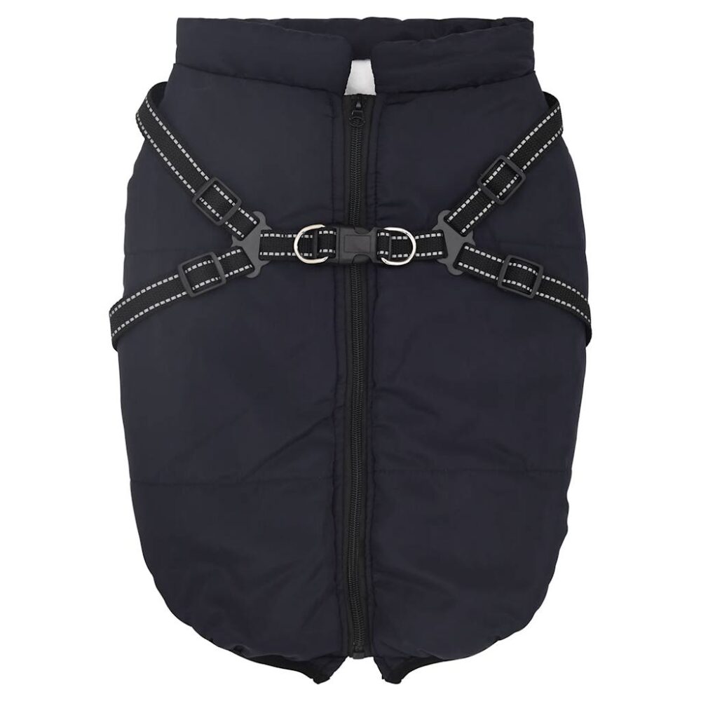 Mantenha o seu cão quente nos dias frios com este casaco acolhedor com um arnês incorporado! Impermeável e confortável: Este casaco de inverno para cão tem uma camada exterior impermeável para manter o seu animal seco, um forro de lã macio para o calor e acolchoamento extra para conforto.Arnês ajustável: Este casaco de passeio para cães possui alças ajustáveis para um ajuste perfeito, proporcionando o máximo conforto.Faixa refletora de segurança: Equipado com tiras refletoras, este colete para cães melhora a visibilidade em condições de pouca luz, garantindo a sua segurança e a do seu cão durante os passeios noturnos.Design de zíper conveniente: O design do zíper permite fácil ligar e desligar, simplificando o processo de roupa do seu animal de estimação e economizando tempo ao sair.Acessório D-ring: Os robustos D-rings são perfeitos para fixar com segurança uma coleira, proporcionando segurança adicional e tornando-o uma escolha ideal para caminhadas.
