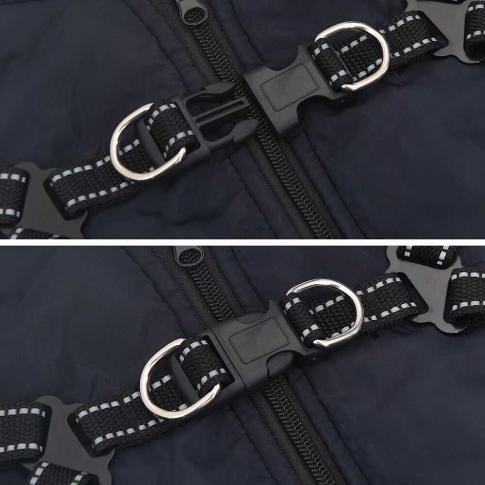 Mantenha o seu cão quente nos dias frios com este casaco acolhedor com um arnês incorporado! Impermeável e confortável: Este casaco de inverno para cão tem uma camada exterior impermeável para manter o seu animal seco, um forro de lã macio para o calor e acolchoamento extra para conforto.Arnês ajustável: Este casaco de passeio para cães possui alças ajustáveis para um ajuste perfeito, proporcionando o máximo conforto.Faixa refletora de segurança: Equipado com tiras refletoras, este colete para cães melhora a visibilidade em condições de pouca luz, garantindo a sua segurança e a do seu cão durante os passeios noturnos.Design de zíper conveniente: O design do zíper permite fácil ligar e desligar, simplificando o processo de roupa do seu animal de estimação e economizando tempo ao sair.Acessório D-ring: Os robustos D-rings são perfeitos para fixar com segurança uma coleira, proporcionando segurança adicional e tornando-o uma escolha ideal para caminhadas.