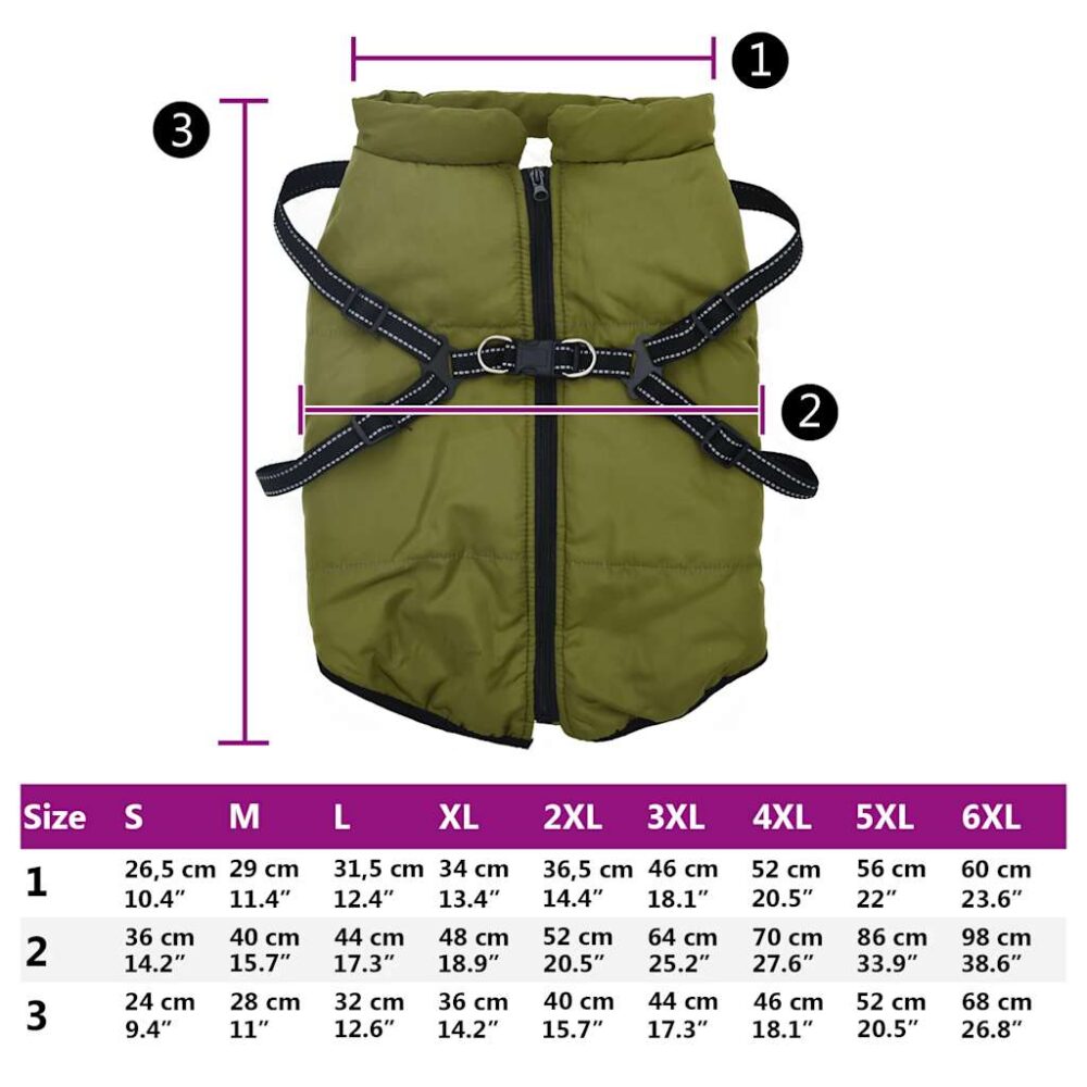 Mantenha o seu cão quente nos dias frios com este casaco acolhedor com um arnês incorporado! Impermeável e confortável: Este casaco de inverno para cão tem uma camada exterior impermeável para manter o seu animal seco, um forro de lã macio para o calor e acolchoamento extra para conforto.Arnês ajustável: Este casaco de passeio para cães possui alças ajustáveis para um ajuste perfeito, proporcionando o máximo conforto.Faixa refletora de segurança: Equipado com tiras refletoras, este colete para cães melhora a visibilidade em condições de pouca luz, garantindo a sua segurança e a do seu cão durante os passeios noturnos.Design de zíper conveniente: O design do zíper permite fácil ligar e desligar, simplificando o processo de roupa do seu animal de estimação e economizando tempo ao sair.Acessório D-ring: Os robustos D-rings são perfeitos para fixar com segurança uma coleira, proporcionando segurança adicional e tornando-o uma escolha ideal para caminhadas.