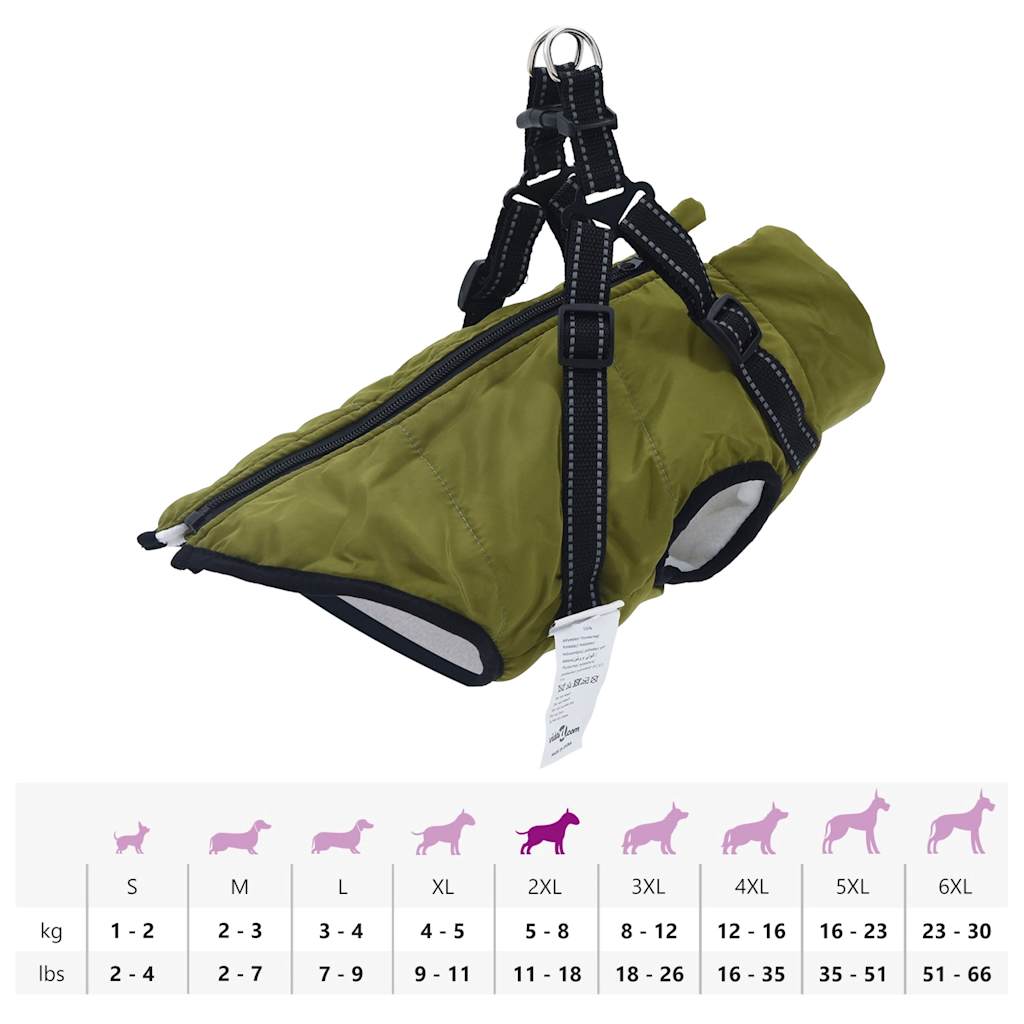 casaco de cães c/ arnês impermeável reflexivo verde tropa 4XL - PORTES GRÁTIS