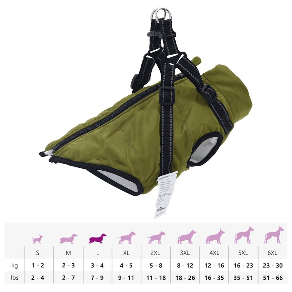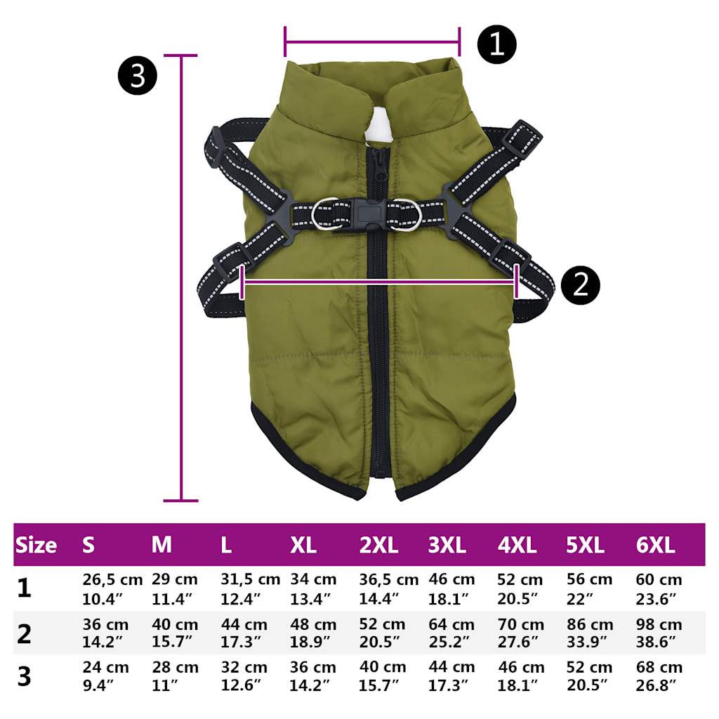 Mantenha o seu cão quente nos dias frios com este casaco acolhedor com um arnês incorporado! Impermeável e confortável: Este casaco de inverno para cão tem uma camada exterior impermeável para manter o seu animal seco, um forro de lã macio para o calor e acolchoamento extra para conforto.Arnês ajustável: Este casaco de passeio para cães possui alças ajustáveis para um ajuste perfeito, proporcionando o máximo conforto.Faixa refletora de segurança: Equipado com tiras refletoras, este colete para cães melhora a visibilidade em condições de pouca luz, garantindo a sua segurança e a do seu cão durante os passeios noturnos.Design de zíper conveniente: O design do zíper permite fácil ligar e desligar, simplificando o processo de roupa do seu animal de estimação e economizando tempo ao sair.Acessório D-ring: Os robustos D-rings são perfeitos para fixar com segurança uma coleira, proporcionando segurança adicional e tornando-o uma escolha ideal para caminhadas.