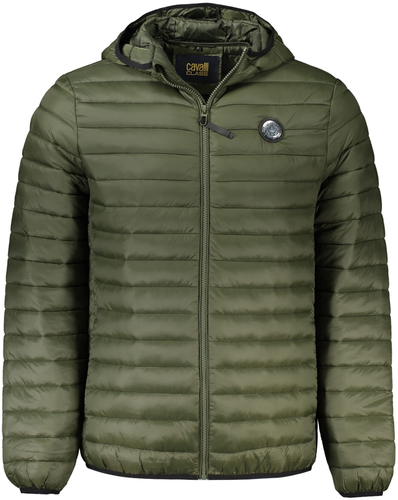 CASACO DE MANGA COMPRIDA COM CAPUZ, ACOLCHOAMENTO LEVE, 2 BOLSOS EXTERIORES COM BOTÃO, 2 BOLSOS INTERIORES, FECHO DE CORRER, APLICAÇÃO, LOGÓTIPO