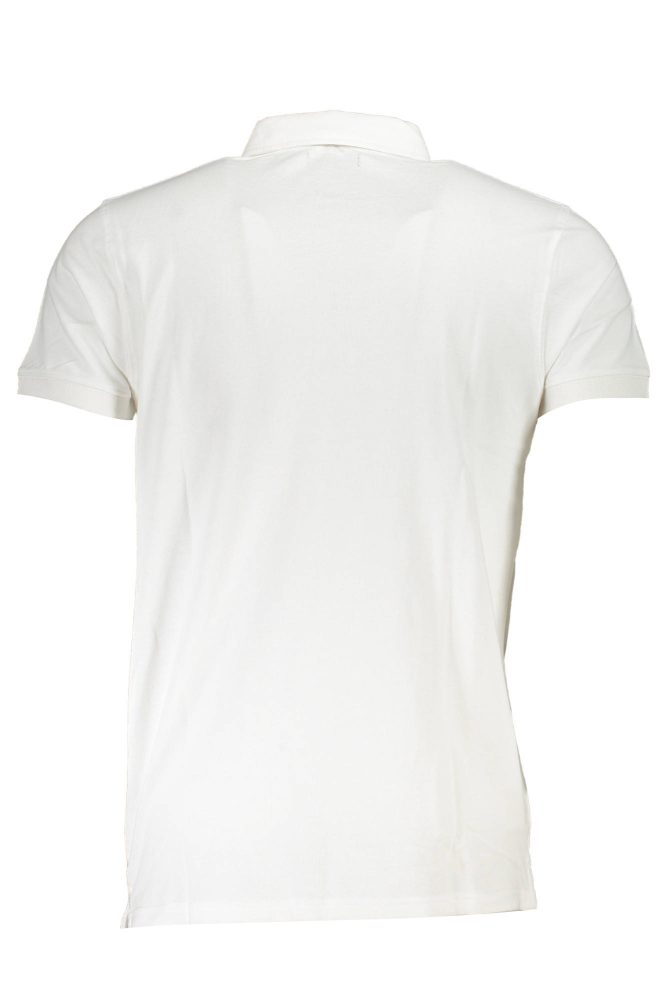 Pólo de manga curta com 3 botões, detalhes contrastantes, logotipo estampado.