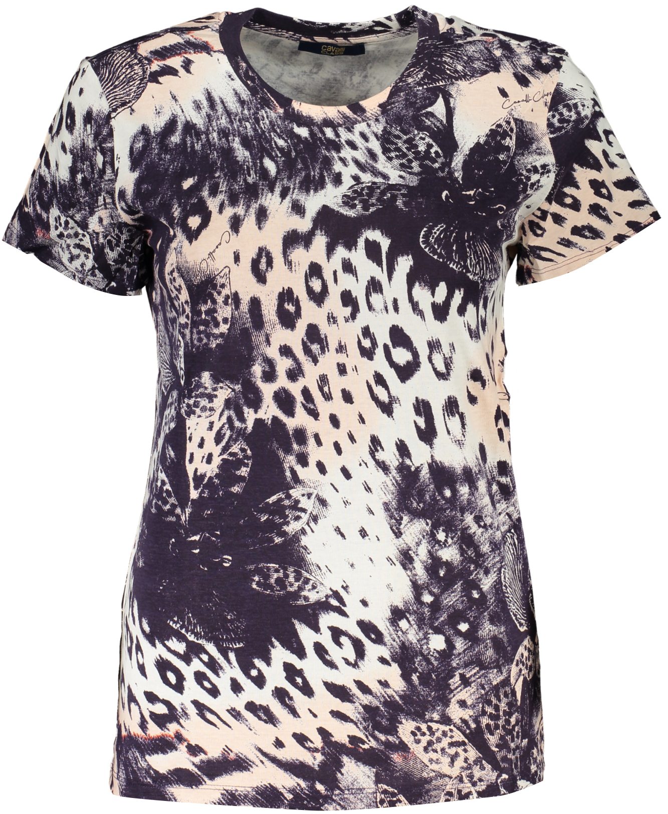 T-shirt com gola larga e logótipo estampado.
