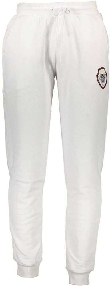 Calças desportivas com cintura elástica com cordão, elásticos nos tornozelos, 3 bolsos e logótipo aplicado.