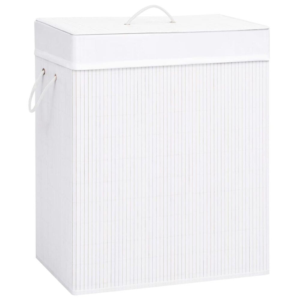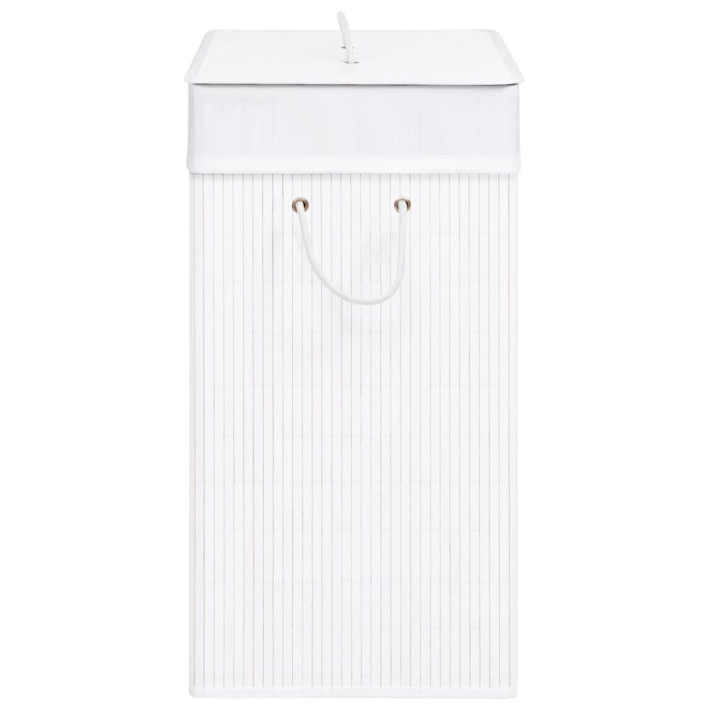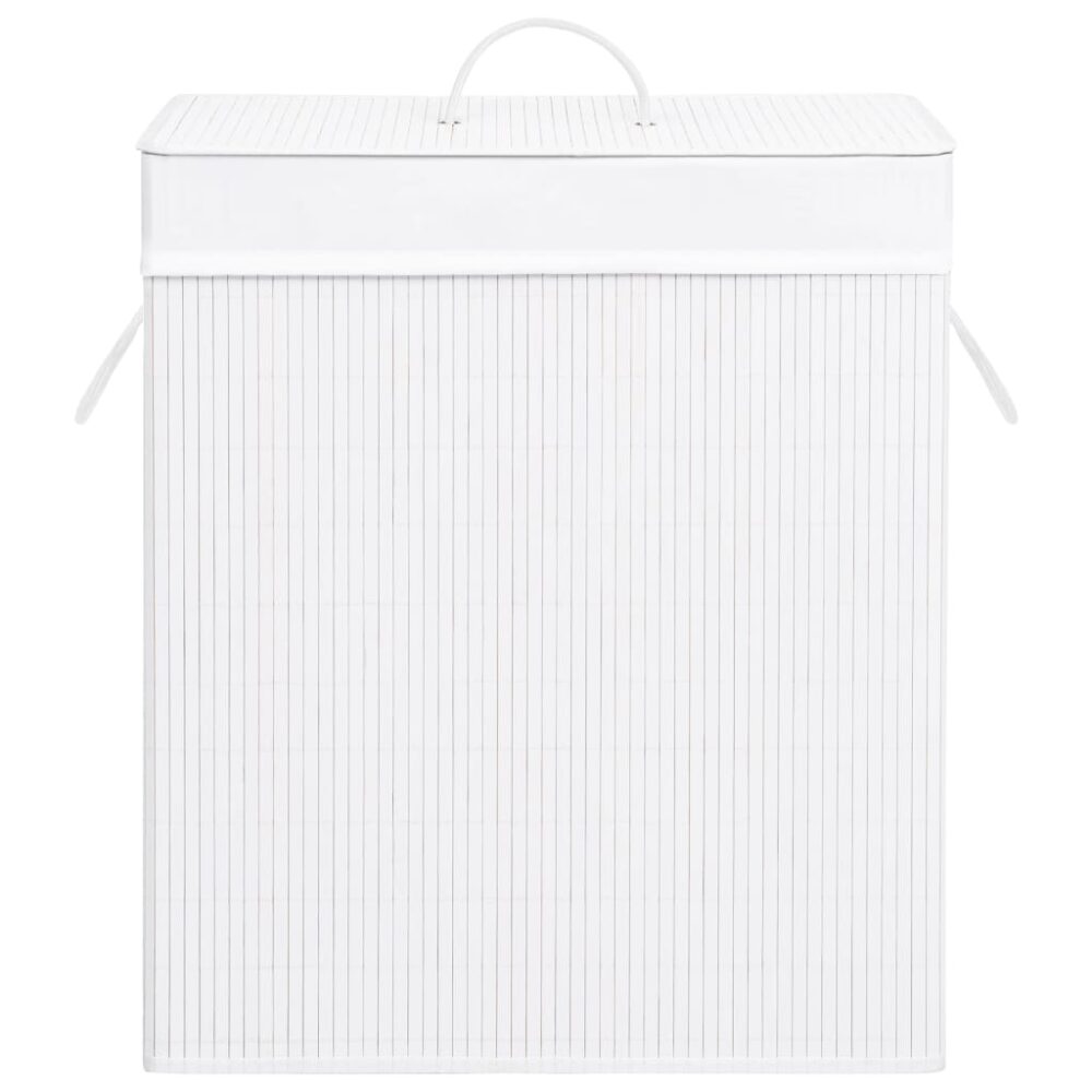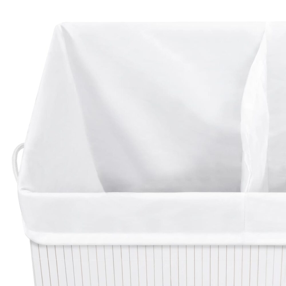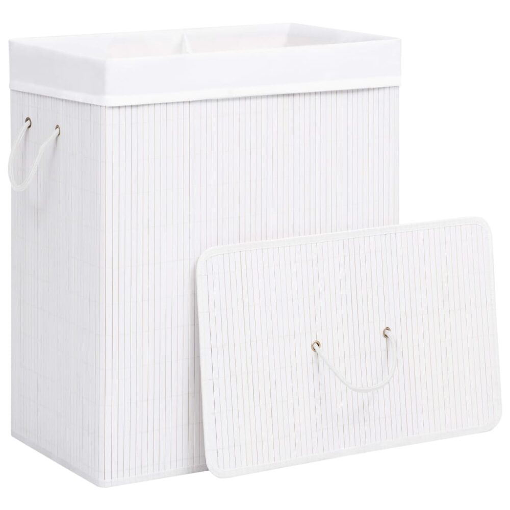 Cesto para roupa suja c/ 2 secções 100 L bambu branco - PORTES GRÁTIS