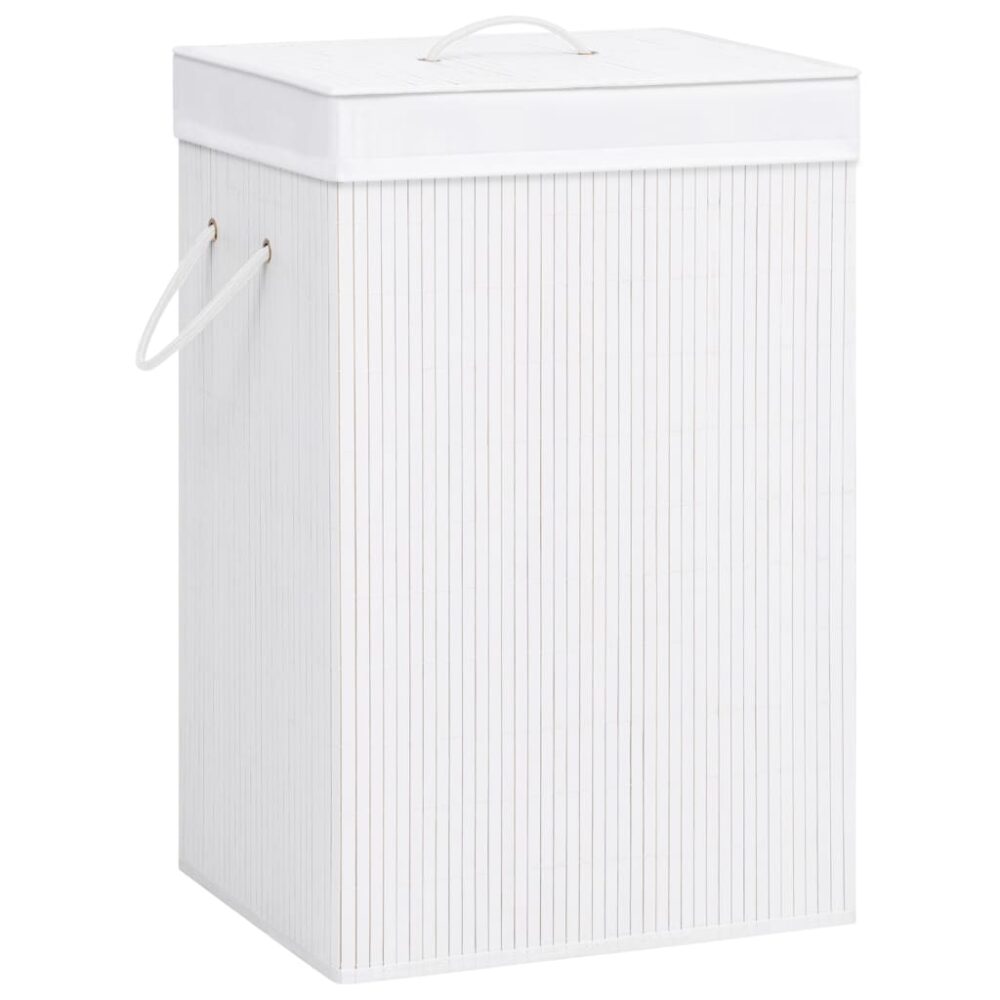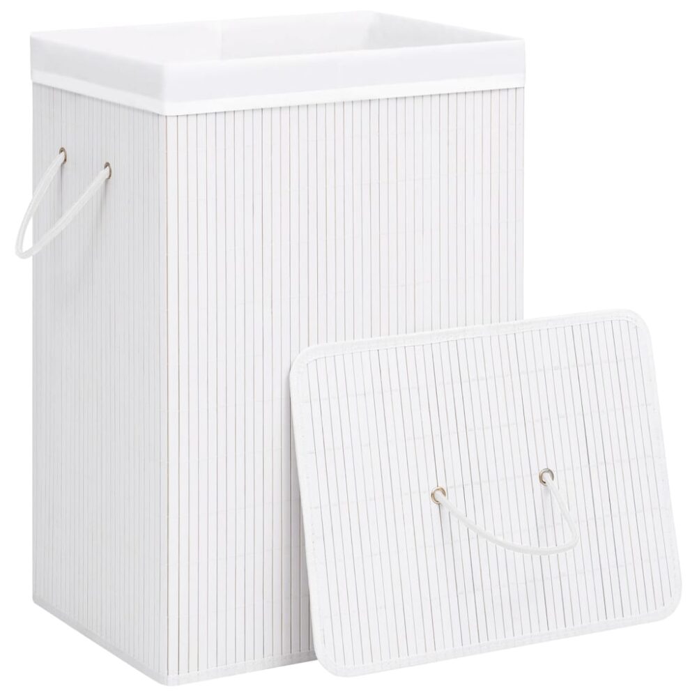Cesto para roupa suja c/ secção única bambu branco - PORTES GRÁTIS