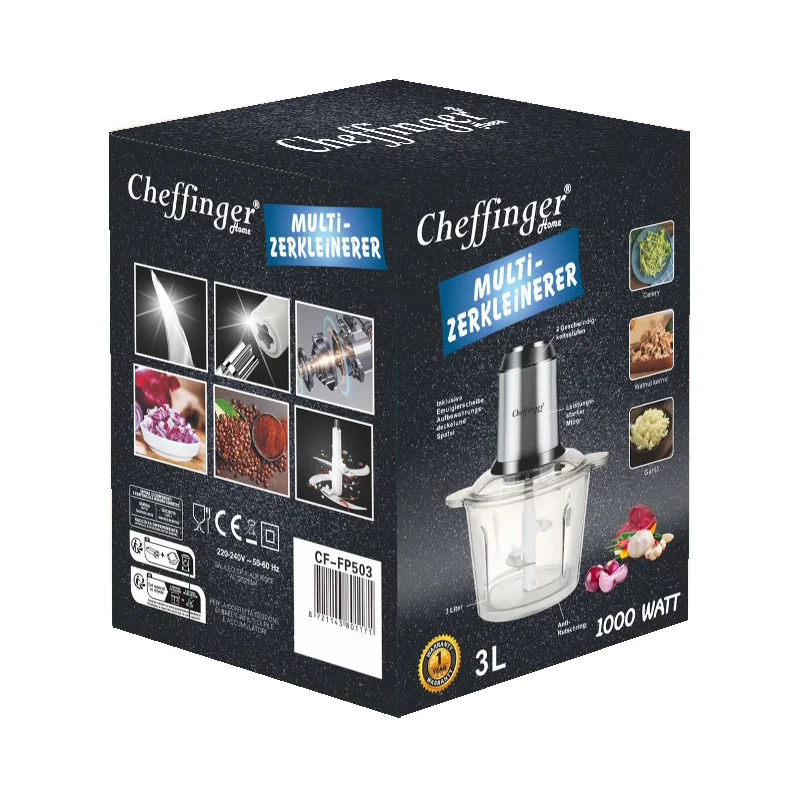 O Processador de Alimentos Cheffinger CF-FP503 3L é um poderoso aparelho de cozinha concebido para tornar a preparação de alimentos rápida e eficiente. Com um motor robusto de 1000 W, este processador de alimentos é capaz de lidar com uma variedade de tarefas, desde cortar vegetais a misturar ingredientes. As suas duas definições de velocidade permitem um controlo preciso, quer esteja a preparar alimentos macios ou duros, garantindo sempre a consistência perfeita. O processador está equipado com um disco emulsionante, uma tampa de armazenamento e uma espátula, tornando-o numa ferramenta versátil para todas as suas necessidades culinárias.