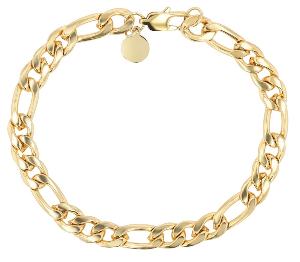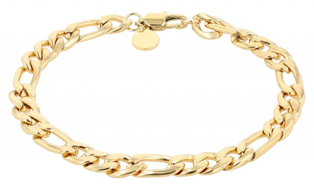 A pulseira é fabricada em aço inoxidável com um padrão fígaro. As dimensões resultam de um comprimento total de 21,5 cm, uma largura de 8 mm e uma espessura de 3 mm. A pulseira de corrente pode ser aberta e fechada com um fecho de lagosta, também em aço inoxidável.