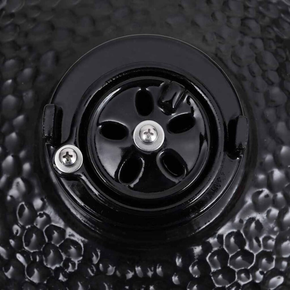 A churrasqueira de cerâmica possui uma tampa articulada muito resistente com um respiradouro e um termómetro embutido. Graças ao respiradouro em camadas, poderá facilmente controlar o fluxo de ar e também a temperatura. A cerâmica de alta qualidade, com um acabamento externo esmaltado e fosco, é durável e esteticamente agradável. É um processo de cozinhar único que adiciona sabor aos alimentos, ao mesmo tempo que os mantém excecionalmente tenros! Os pés de aço revestido a pó atribuem uma estabilidade adicional à churrasqueira.