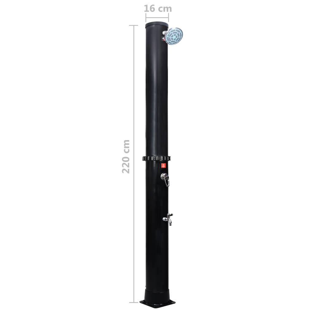Está incluída uma torneira para qualquer outra necessidade de água que possa ter. São também fornecidos 4 parafusos para poder montar a base de chuveiro em qualquer superfície plana e sólida de forma firme e estável. Este chuveiro solar destina-se a ser adaptado ao seu jardim ou piscina, possuindo uma aparência elegante e sofisticada.