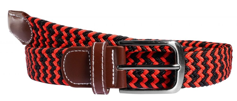 O cinto desportivo em tecido entrançado com o seu padrão em ziguezague em vermelho e preto exprime o estilo desportivo de quem o usa. As aplicações em pele sintética castanha dão-lhe um toque elegante. Feito de material têxtil de alta qualidade, o nosso cinto entrançado é confortável de usar. Com diferentes opções de comprimento de 100 cm, 110 cm e 120 cm, uma largura de 3,2 cm e uma espessura de 0,5 cm, existe um tamanho adequado para toda a gente. O cinto tem uma fivela de metal robusta. Um excelente cinto casual em tecido para um look desportivo. O material torna-o muito robusto, durável e resistente a rasgões.