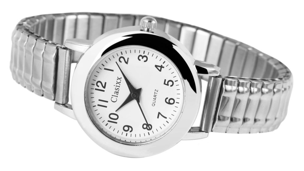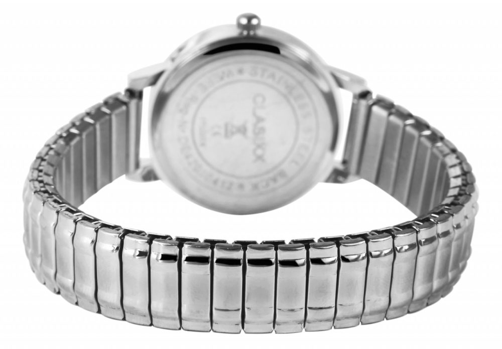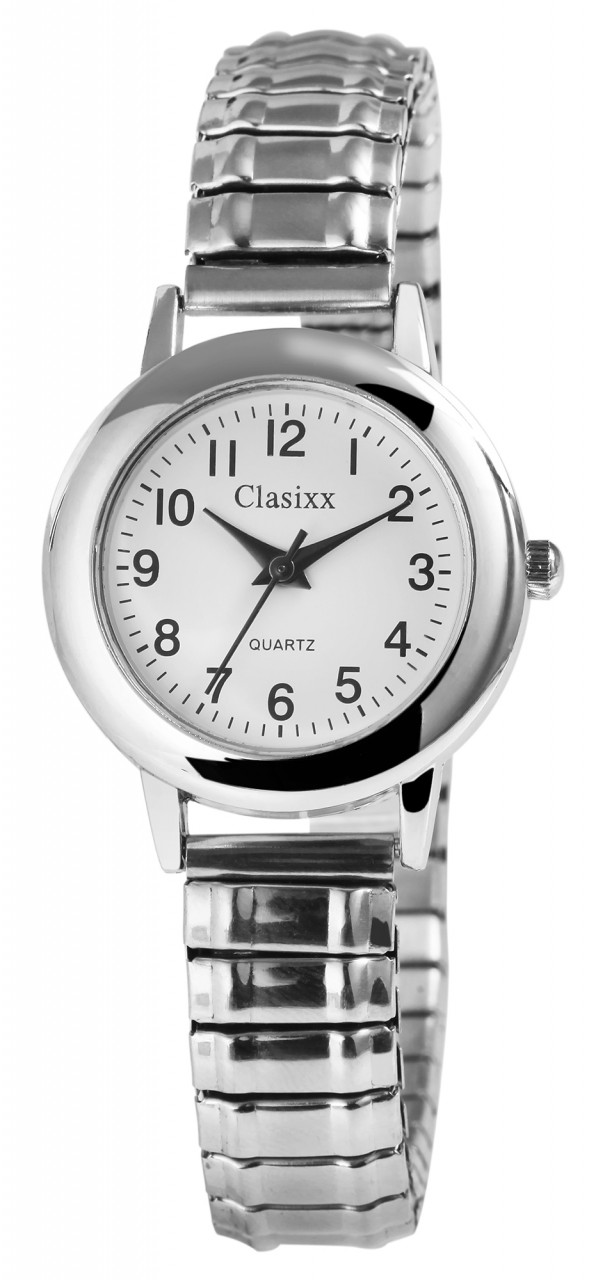 O relógio de pulso analógico de 3 ponteiros para senhora da marca Classixx possui um movimento de quartzo de alta qualidade. A bracelete flexível é feita de aço inoxidável, pode ser puxada confortável e facilmente sobre o pulso e tem 12 mm de largura na extremidade. O comprimento total do relógio é de 18 cm. A caixa metálica com vidro mineral tem um diâmetro de 22 mm e uma altura de 7,5 mm. O fundo da caixa é feito de aço inoxidável. O mostrador transparente com algarismos árabes assegura uma visualização clara para que possa ver rapidamente as horas.