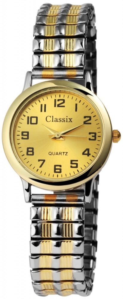O relógio de pulso analógico feminino de 3 ponteiros da marca Clasixx possui um movimento de quartzo de alta qualidade. A bracelete flexível é feita em aço inoxidável, pode ser puxada confortável e facilmente sobre o pulso e tem 14 mm de largura na extremidade. O comprimento total do relógio é de 18,5 cm. A caixa metálica com vidro mineral tem um diâmetro de 28 mm e uma altura de 7 mm. O fundo da caixa é feito de aço inoxidável. O mostrador transparente com algarismos árabes assegura uma visualização clara para que possa ver rapidamente as horas. Em suma, este relógio é um companheiro fiável que pode ser usado em todas as ocasiões e ocasiões.