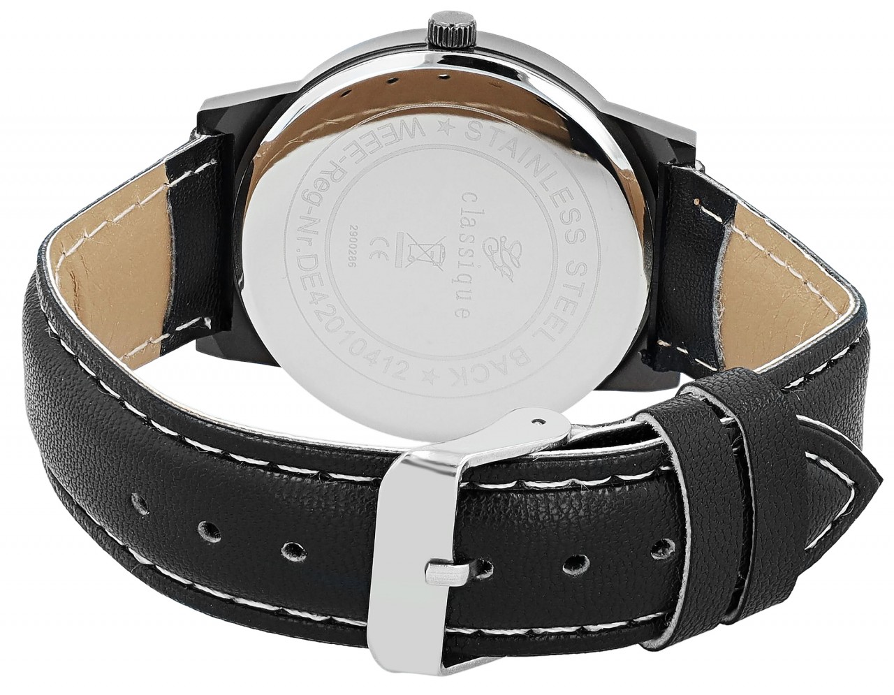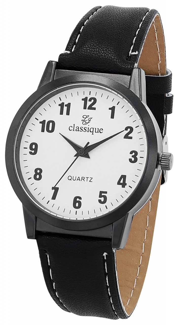 O relógio de pulso masculino analógico de 3 ponteiros da marca Classique apresenta um movimento de quartzo de alta qualidade. A pulseira de couro sintético tem 20 mm de largura nas hastes e afunila 2 mm, de modo que a largura do fecho é de 18 mm. O relógio pode ser aberto e fechado com uma fivela de pino. O comprimento total do relógio é de 25 cm. A caixa de metal com vidro mineral tem um diâmetro de 40 mm e uma altura de 9 mm. O fundo da caixa é feito de aço inoxidável. O mostrador simples tem uma cor contrastante para que a hora possa ser lida rapidamente. O relógio também está disponível em diferentes versões. O relógio de pulso é o acessório perfeito para qualquer look, pois seu estilo clássico combina com qualquer ocasião.