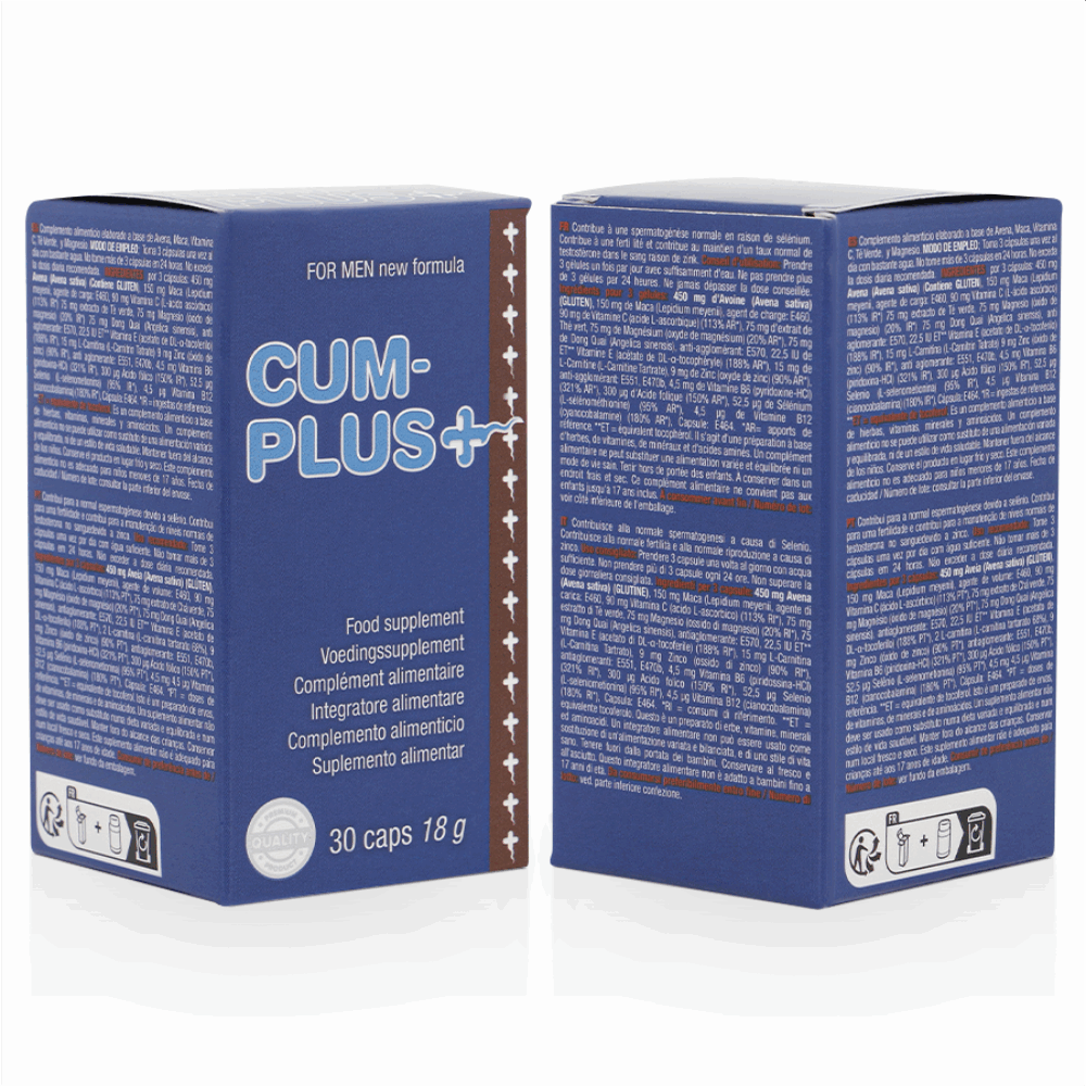 Cum Plus pode ajudar a melhorar a qualidade e a produção do sêmen, graças aos ingredientes Zinco e Selênio. Estas cápsulas com ingredientes naturais melhoram a fertilidade, os órgãos e o bem-estar físico geral dos homens. Com a ajuda de Cum Plus você pode manter a qualidade do esperma.
