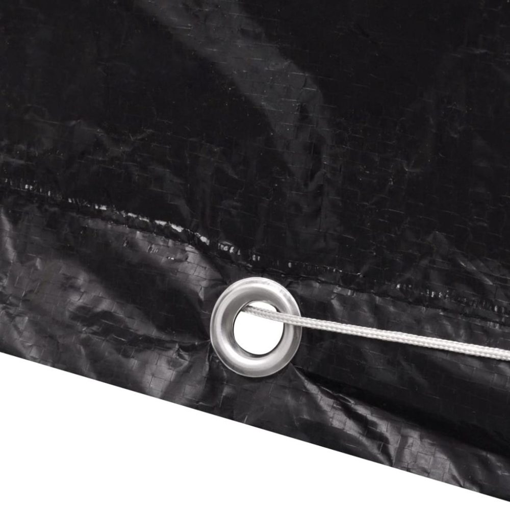 A cobertura é feita de polietileno resistente, à prova de água, resistente a raios UV, à prova de rasgões, portanto, adequada para o uso diário. Ela tem 10 ilhós de alumínio e uma corda de fixação, de modo a se encaixar melhor no seu conjunto.