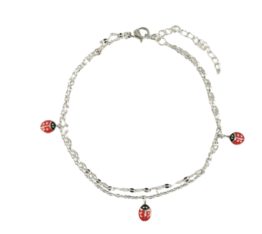 Coccinella – o seu must-have lúdico do verão A tornozeleira “Coccinella” é um must-have absoluto do verão que dá um toque lúdico ao seu look. Com comprimento de 21cm e extensão adicional de 5cm, oferece um ajuste perfeito para qualquer tornozelo. A tornozeleira “Coccinella” apresenta-se num look trendy de 2 camadas com corrente de âncora em duas versões. Os pingentes, três joaninhas encantadoras, dão à tornozeleira um charme alegre que faz brilhar a criança que há em você. O fecho lagosta garante uma fixação segura e permite que a tornozeleira seja facilmente colocada e retirada. Seja na praia ou na cidade, a tornozeleira “Coccinella” é a companheira perfeita.