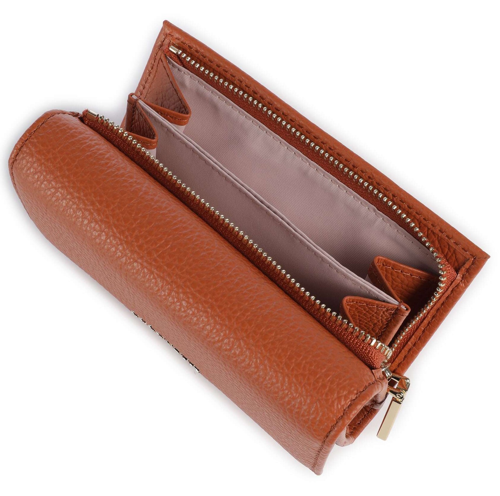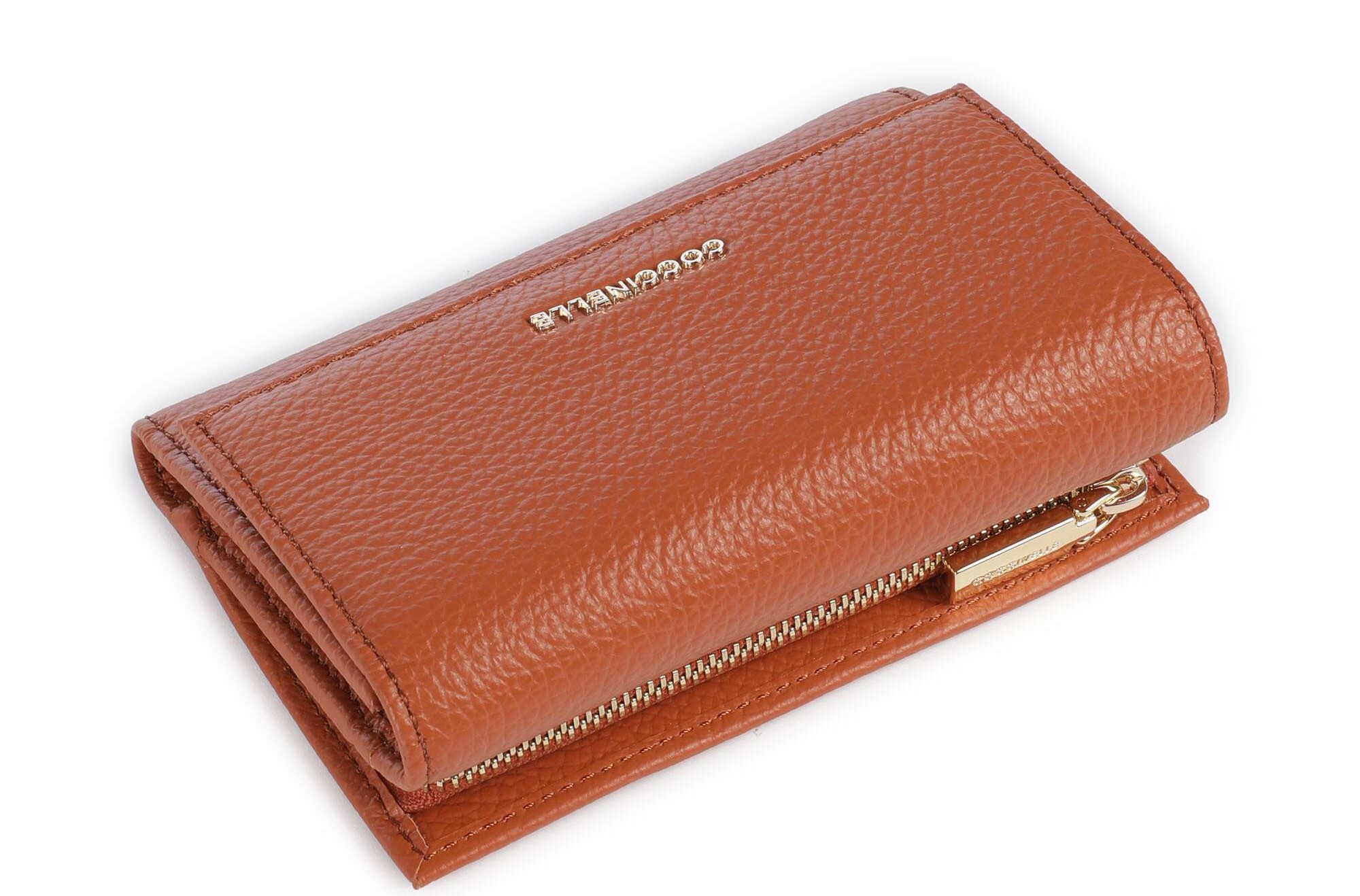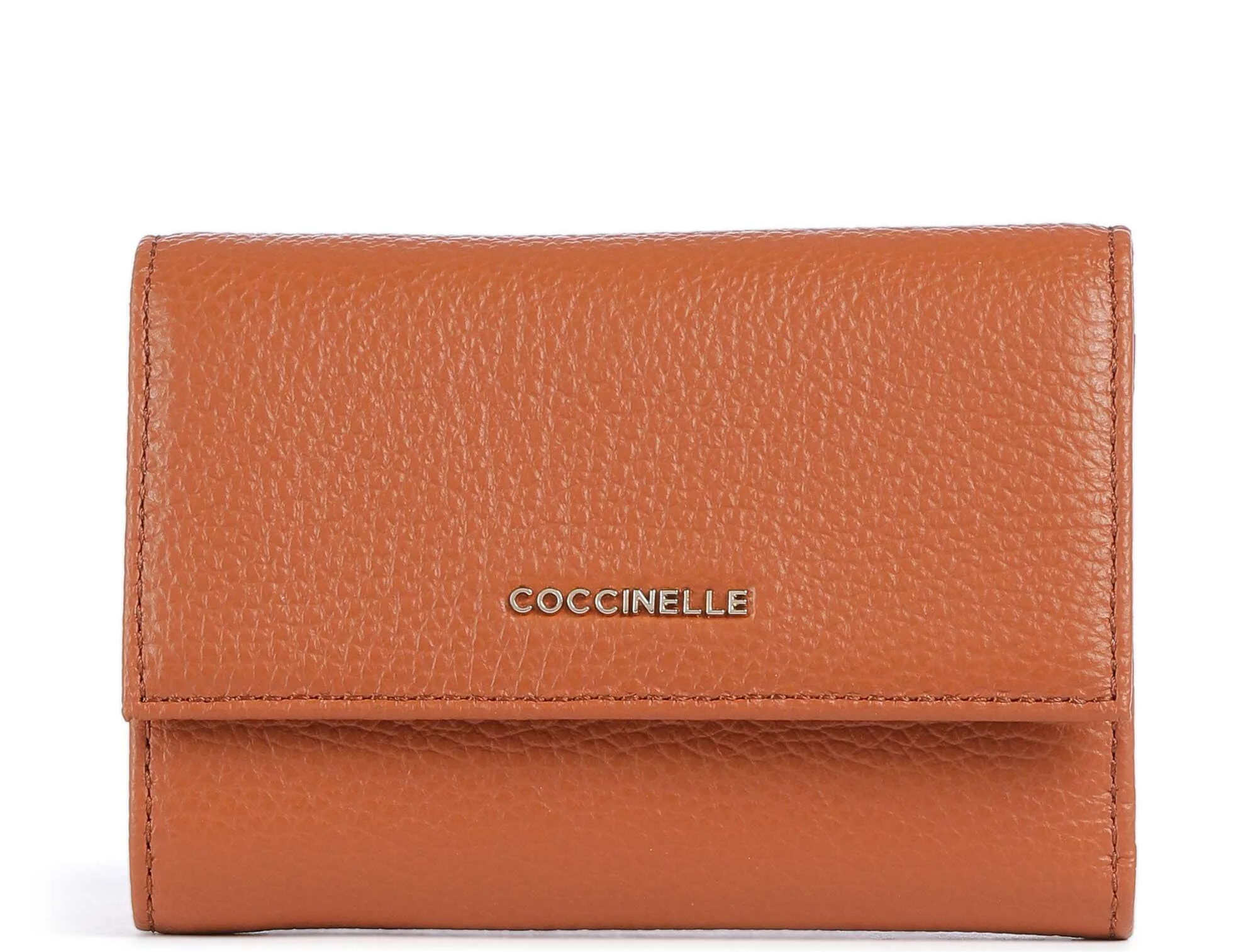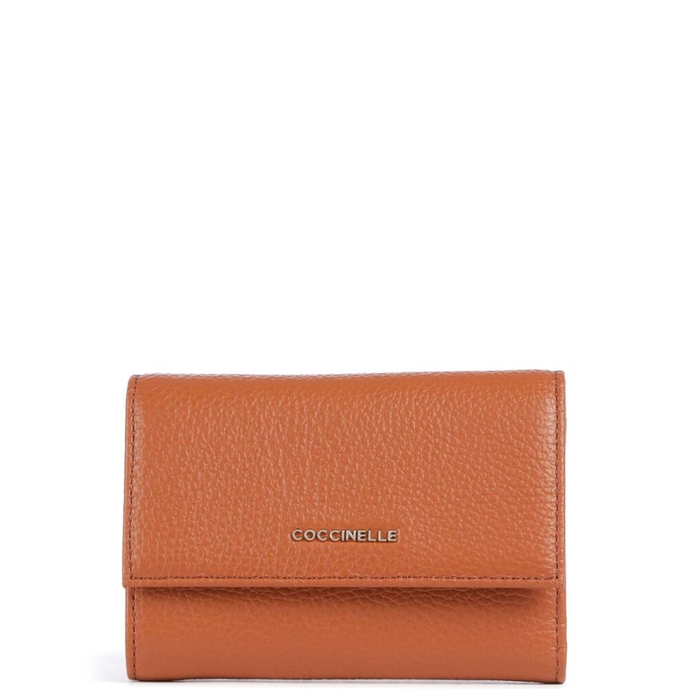 Carteira compacta e elegante, com acabamento metálico macio, confeccionada em 100% pele, ideal para quem procura funcionalidade aliada a um design moderno.