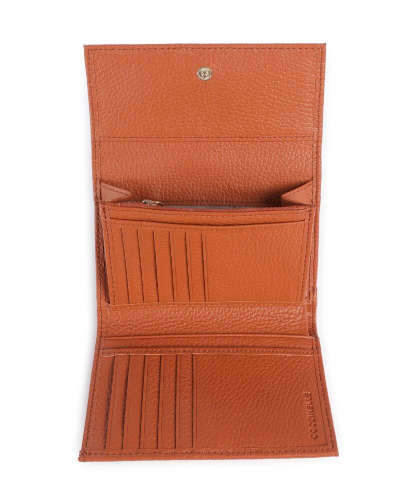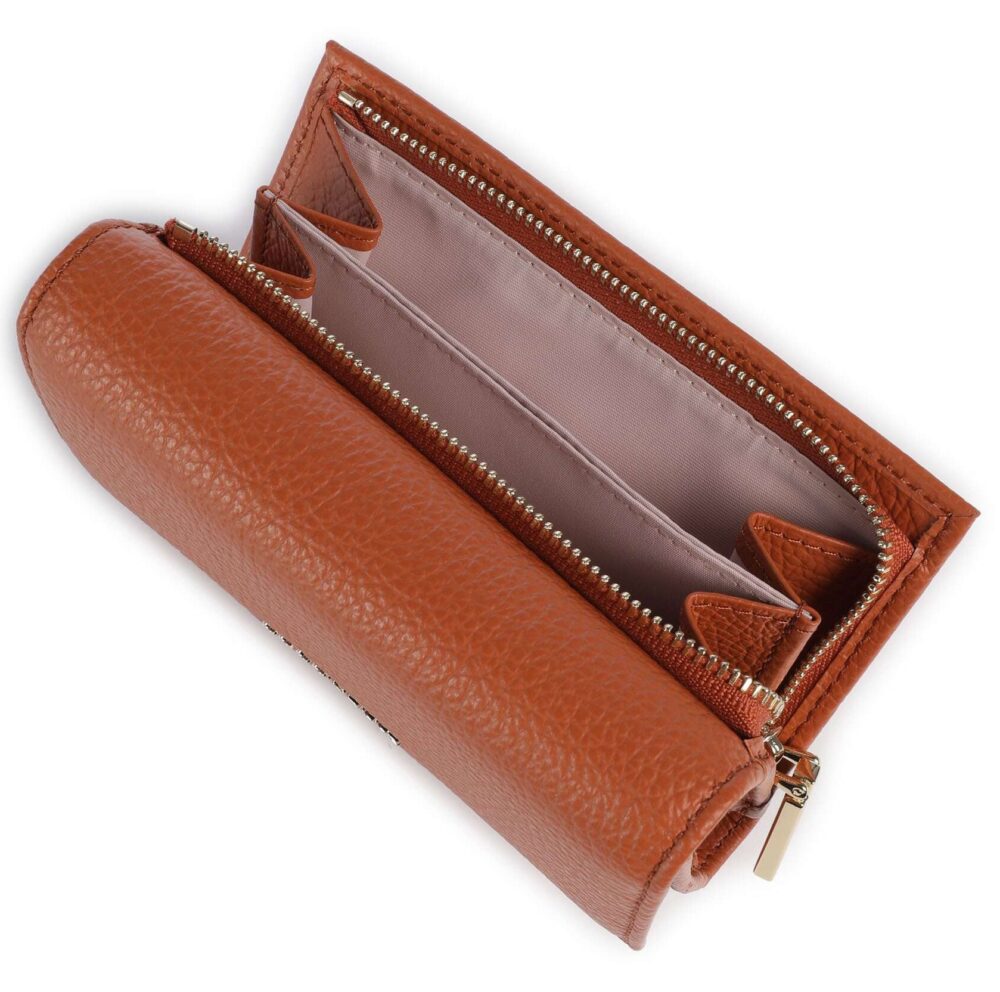 Dispõe de 3 compartimentos, espaços interiores para cartões e 1 bolso exterior para moedas, facilitando a organização dos essenciais.
