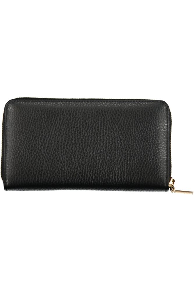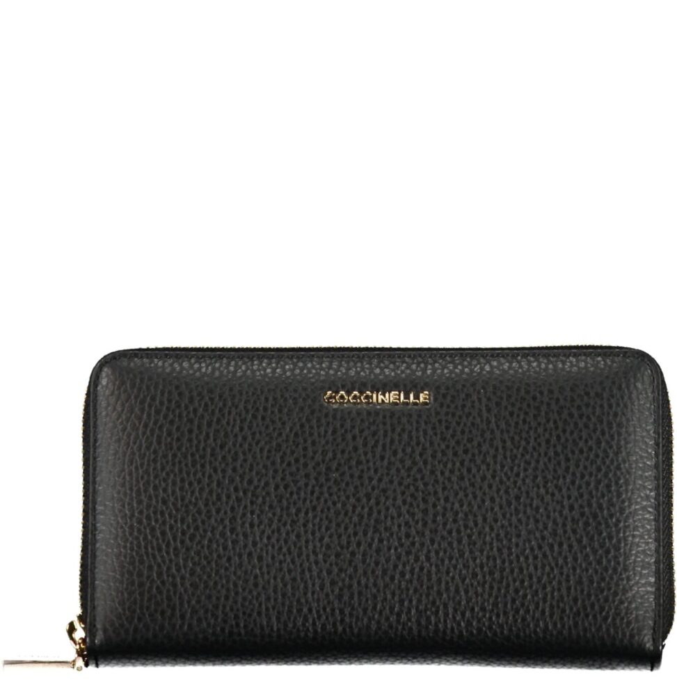 Carteira com 5 compartimentos, porta-moedas, espaços para cartões, fecho de correr, logótipo.