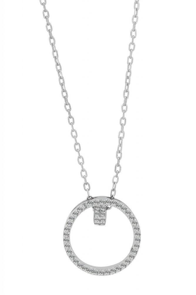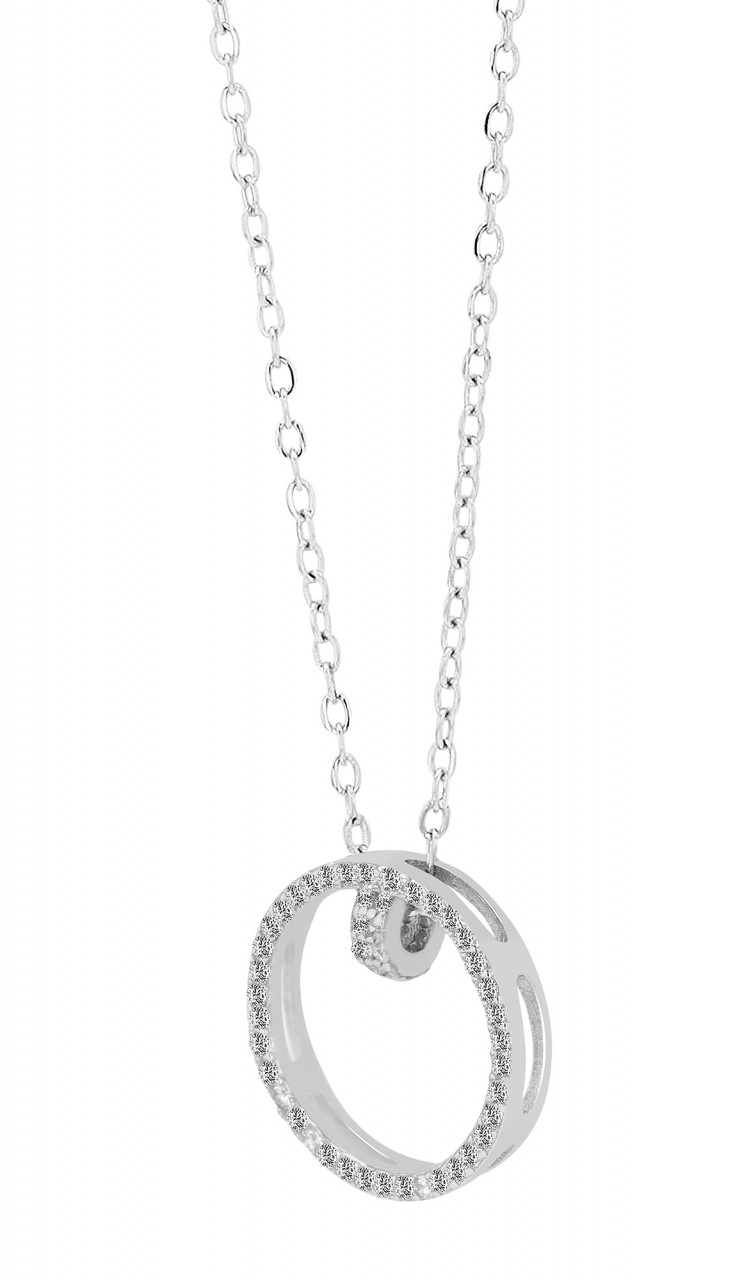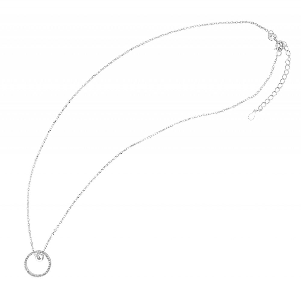 Com 42 cm de comprimento, expansível com extensão de 5 cm e fechada com fecho lagosta, esta joia oferece não só conforto de uso, mas também opções de ajuste individual. O que chama a atenção neste colar é o pingente redondo, que consiste em um anel com 11 mm de diâmetro, 3 mm de largura e 1 mm de espessura, ao qual está anexado outro elemento prateado, decorado com pedras brilhantes de zircônia. . A beleza do pingente realça a elegância do colar, tornando-o uma joia da mais alta qualidade e sofisticação.