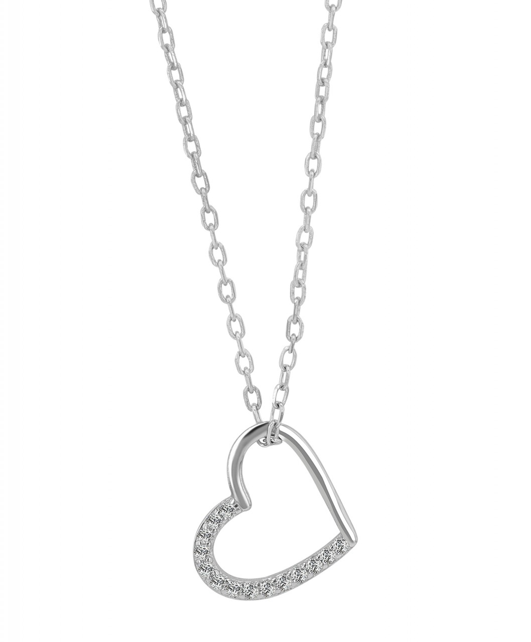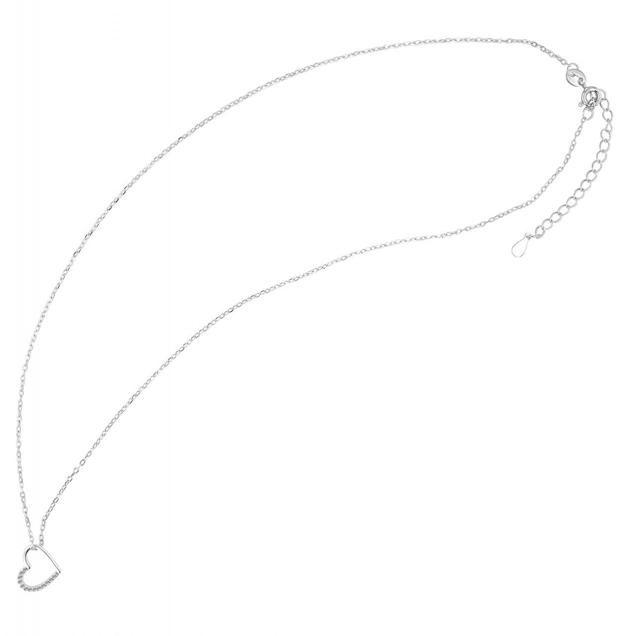 A delicada corrente é feita de prata esterlina 925 pura e banhada a ródio para dar um brilho radiante. O acabamento não serve apenas para alcançar a perfeição estética, mas também oferece proteção e durabilidade adicionais. Com largura de 1 mm e espessura de 0,5 mm, o colar oferece uma experiência de uso confortável, estável e leve ao mesmo tempo. O fecho lagosta garante uma fixação segura e facilita a colocação e a retirada. A peça central é o pingente de coração. Com um tamanho de 10 x 12 x 1 mm, é o epítome da elegância. O pingente é incrustado com pedras radiantes de zircônia que realçam particularmente a beleza do coração.