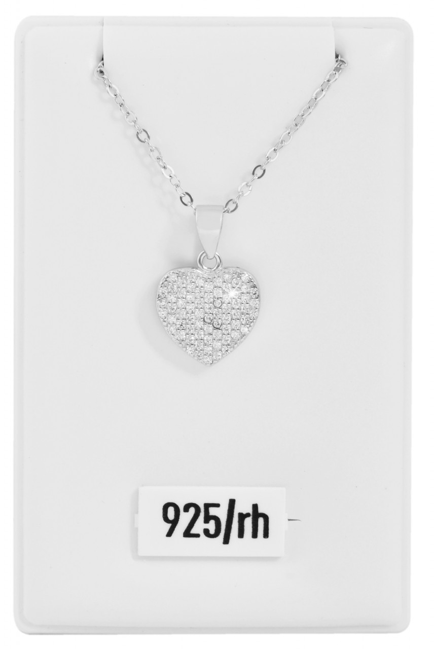 O colar feito em prata de lei 925/- é feito em padrão âncora e tem comprimento total de 43 cm incluindo uma corrente extensora de 5 cm de comprimento. Há um pingente de prata real em forma de coração preso à corrente, que é totalmente cravejado com cerca de 50 pedras brilhantes de zircônia. O pingente tem comprimento de 12 mm, largura de 11 mm e espessura de 2 mm. Tanto a…