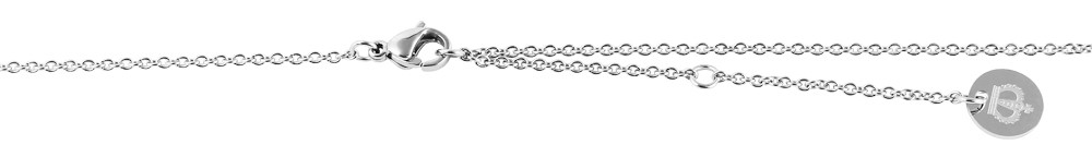 O colar com padrão de âncora é feito de aço inoxidável. O material garante uma longa vida útil do colar. A corrente é prateada e prende na nuca com um fecho lagosta de aço inoxidável. O comprimento da corrente é de 46 cm e a espessura é de 1 mm. Se necessário, pode ser ampliado em 5 cm para que possa ser ajustado individualmente. O colar também possui um pingente de aço inoxidável prateado. O tamanho do pingente resulta da largura de 14 mm e da altura de 15 mm.