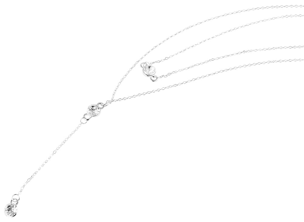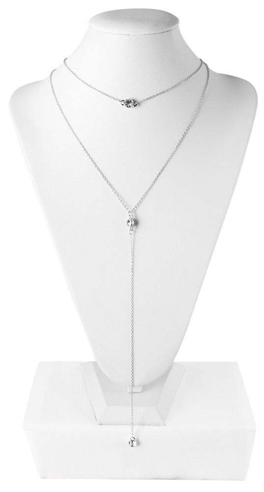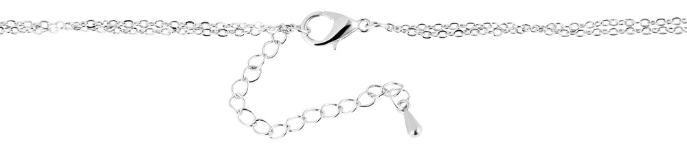O colar com padrão de âncora é feito de metal. A corrente é prateada e prende na nuca com fecho lagosta. O comprimento da corrente é de 52 cm e a espessura é de 1 mm. Se necessário, pode ser ampliado em 6 cm para que possa ser ajustado individualmente. O colar também possui um pingente de metal prateado. O diâmetro do pingente de corrente é de 8 mm. O destaque ótico é aquele com cristais de zircónia.