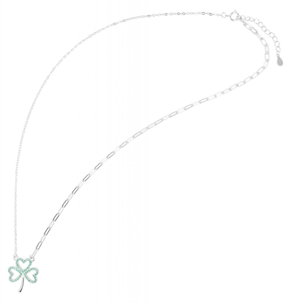 Este deslumbrante colar feito de prata esterlina 925 banhada a ródio é um ótimo chamariz para qualquer decote. O brilho radiante e o design único fazem deste colar um acessório elegante para qualquer ocasião. A peça central visual do colar é o encantador pendente em forma de trevo, que é engastado com um total de 60 zircónias brilhantes. O trevo não só promete boa sorte, como também brilha com a sua zircónia num encantador jogo de luz. O pendente mede 19 x 16,5 x 1,5 mm e é uma verdadeira obra de arte com o seu design pormenorizado. O colar tem um comprimento total de 43 cm mais uma extensão de 3 cm, o que permite uma personalização e um ajuste cómodo. O colar tem uma espessura de 2,5 mm de um lado e de 1 mm do outro, criando um visual único e personalizado.