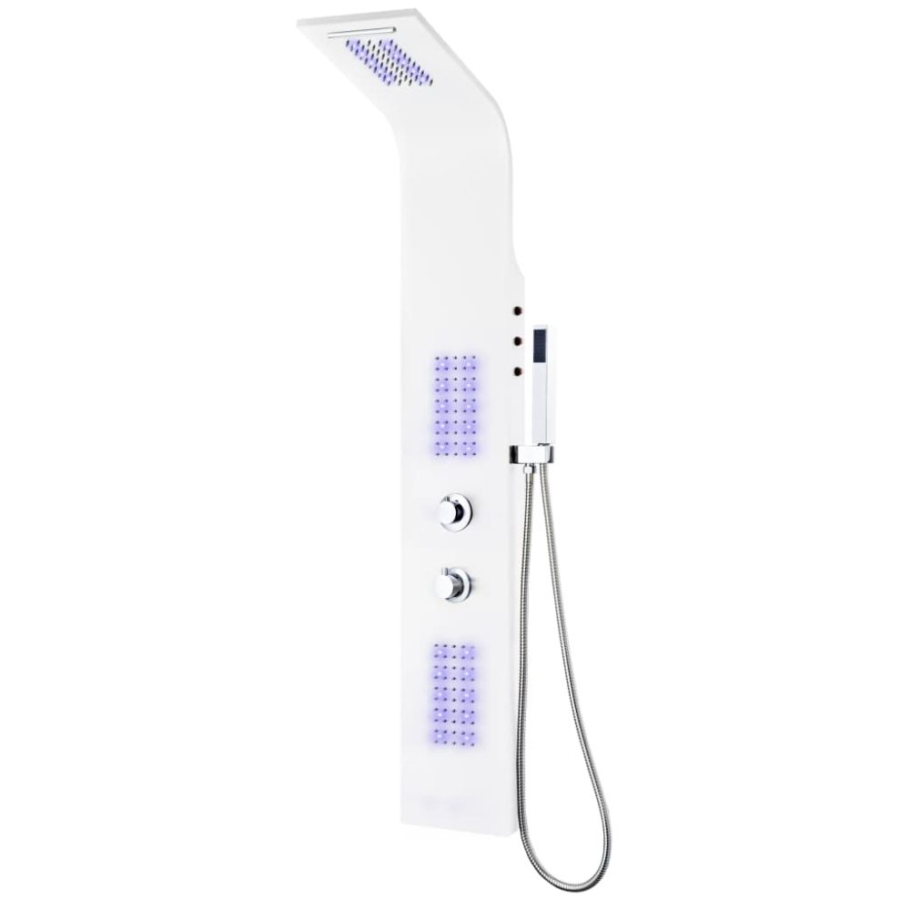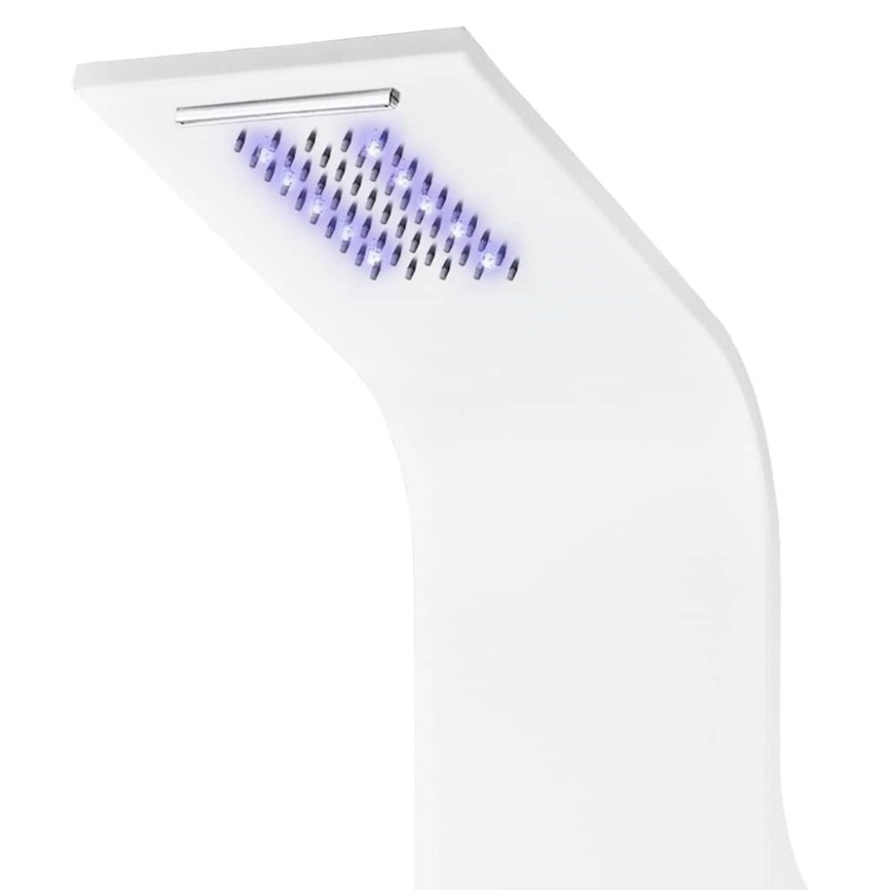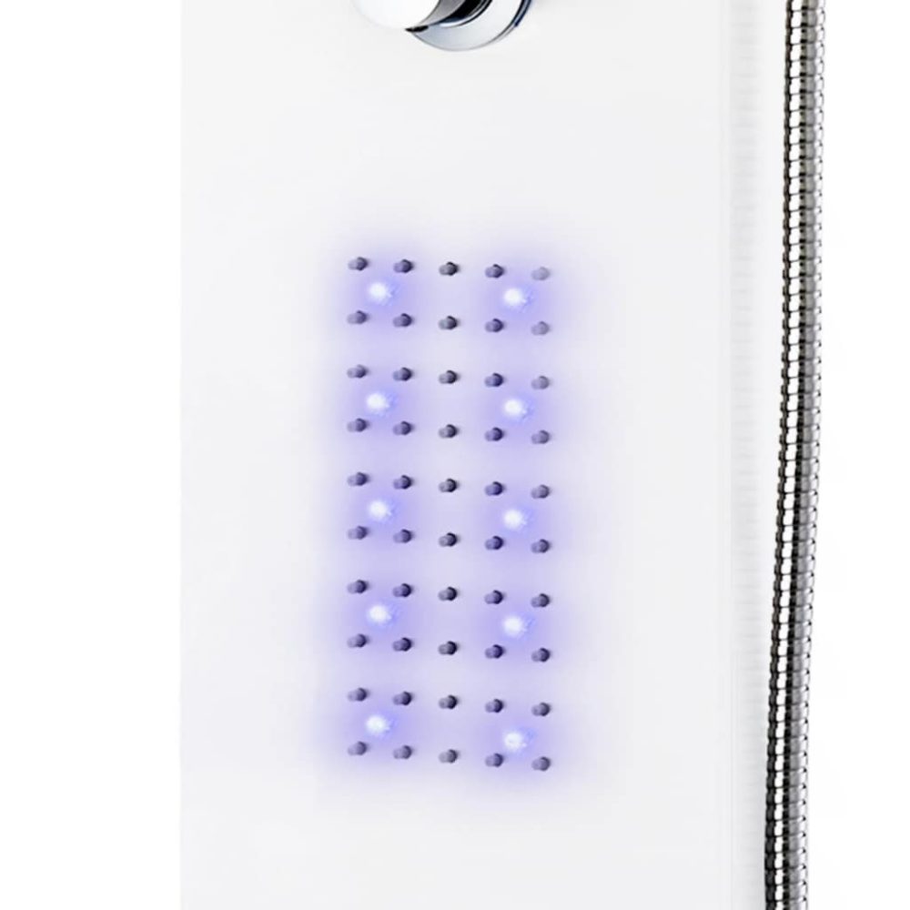 A coluna de duche é feita de alumínio durável e resistente à ferrugem. Está equipada com 30 LEDs resistentes à água no chuveiro e nos jatos de massagem corporal para proporcionar uma iluminação ambiente. Tem quatro modos de chuveiro: chuveiro, cascata, spray de massagem e chuveiro de mão, que podem ser facilmente selecionados. Os bicos de silicone são resistentes aos depósitos de calcário. Mergulhe numa experiência de duche verdadeiramente relaxante e aproveite o estilo moderno deste sistema de coluna de duche maravilhosamente concebido! A montagem é fácil.