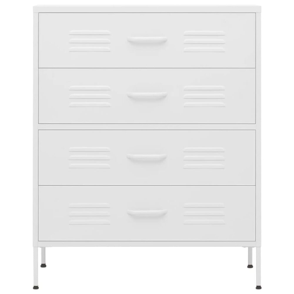 A cómoda, com um design prático, é um verdadeiro destaque para a decoração da sua casa. Este armário de apoio, com uma construção em aço, é robusto e durável. Possui niveladores por baixo para ajustar a altura de acordo com as suas necessidades. As gavetas podem ser completamente estendidas e são ideais para manter todos os tipos de artigos mais pequenos organizados e ao alcance. As gavetas com rolamentos de esferas asseguram uma abertura e fecho suaves, mesmo sob uma carga excessiva.