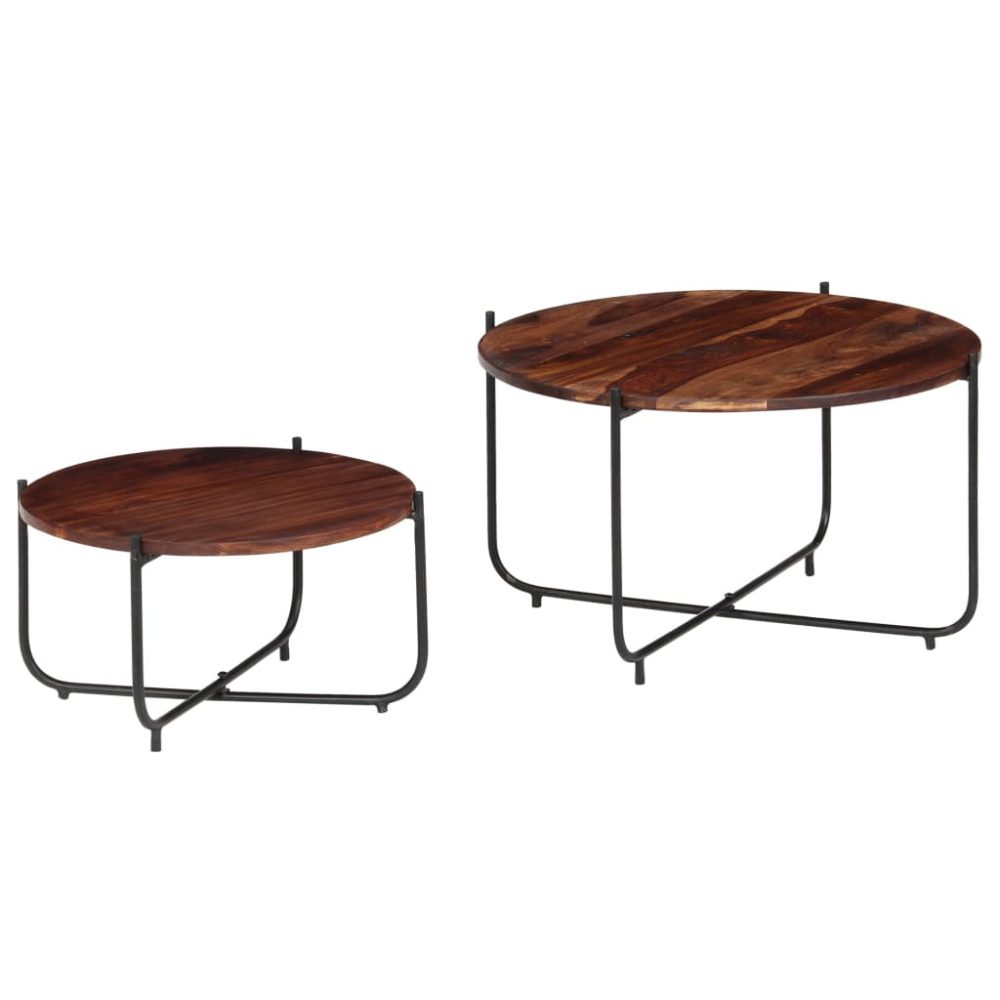 Este conjunto é composto por 2 mesas de centro que são feitas em madeira de sheesham maciça e aço e irá adicionar um toque de charme vintage à decoração da sua casa. Também podem ser usadas como mesas de apoio ao sofá, mesas laterais, mesas de extremidade ou mesas de sala de estar.