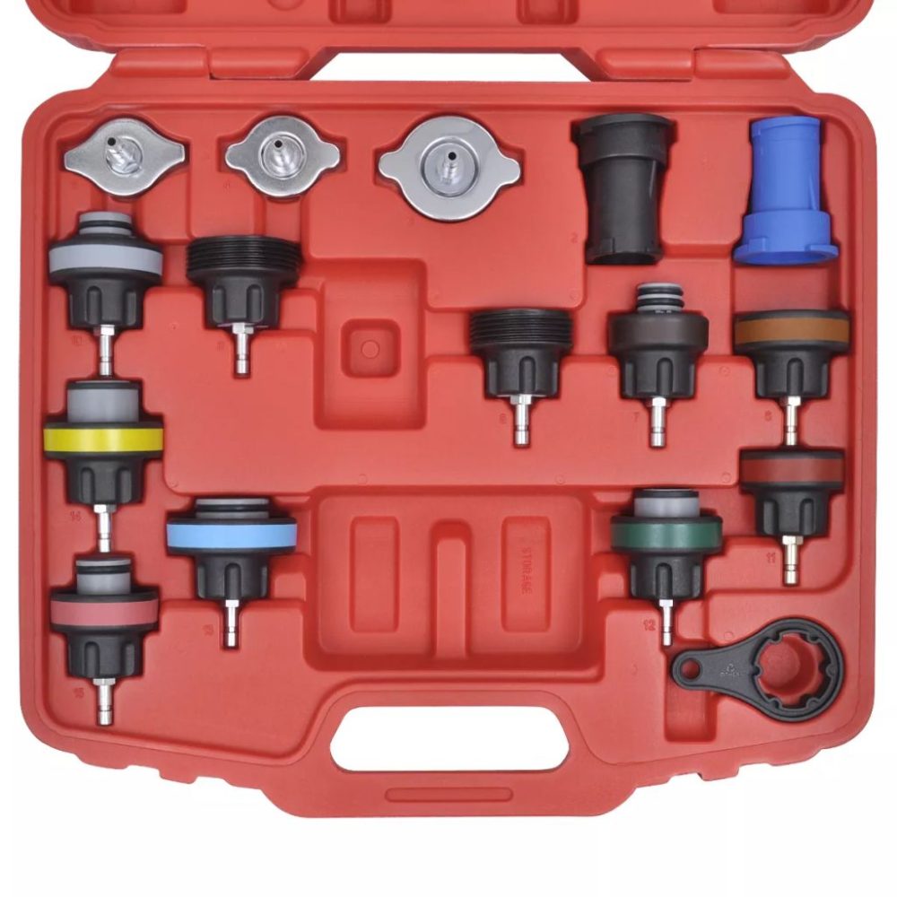 Este conjunto de testador universal de pressão do radiador de alta qualidade é composto por 18 peças, e será uma ferramenta ideal na oficina para mecânicos amateurs ou profissionais.