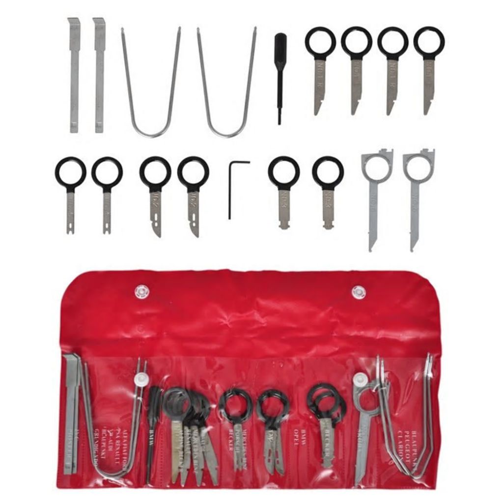 Este conjunto de chaves de remoção de rádio do carro é ideal para lojas estéreo e instaladores de bricolage, mecânica de automóveis, reparação de automóveis e lojas de auto corpo.
