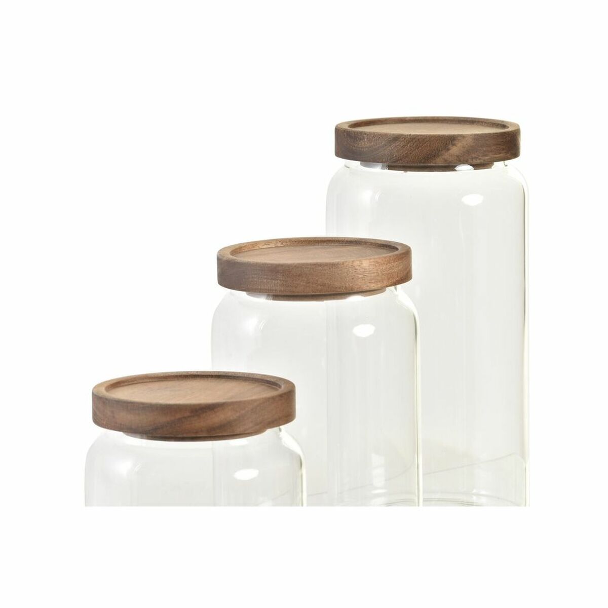 Se gosta de tratar de cada detalhe do seu lar e estar na moda em produtos que lhe vão facilitar a vida, compre Conjunto de 3 Potes DKD Home Decor Acácia Vidro de Borosilicato (1 L) (400 ml) (700 ml) (3 Peças) ao melhor preço.