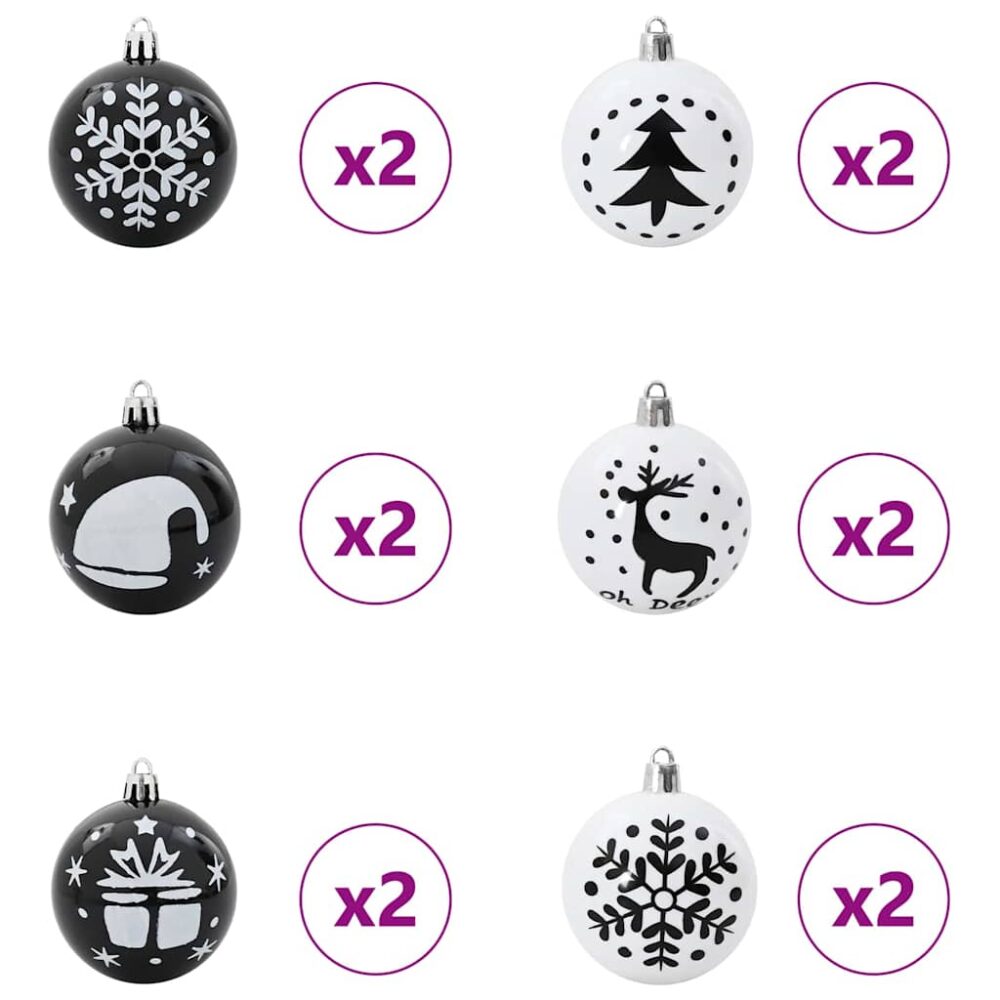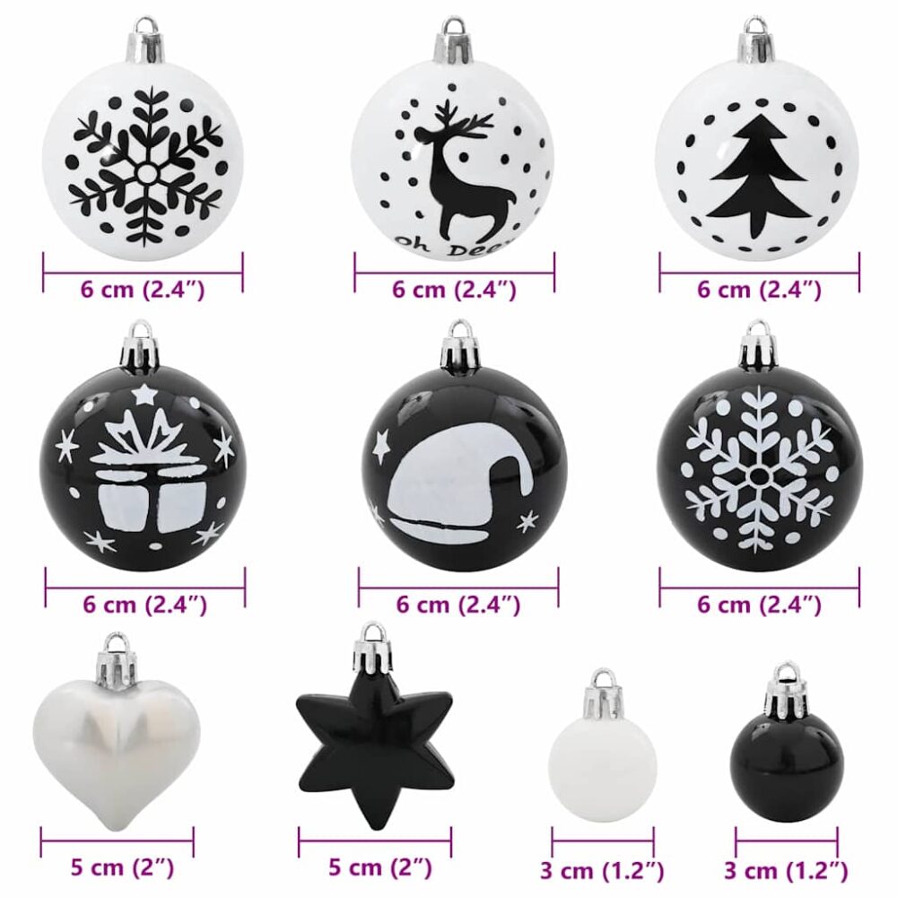 Conjunto de Bolas de Natal 40 pcs Preto e Branco - PORTES GRÁTIS
