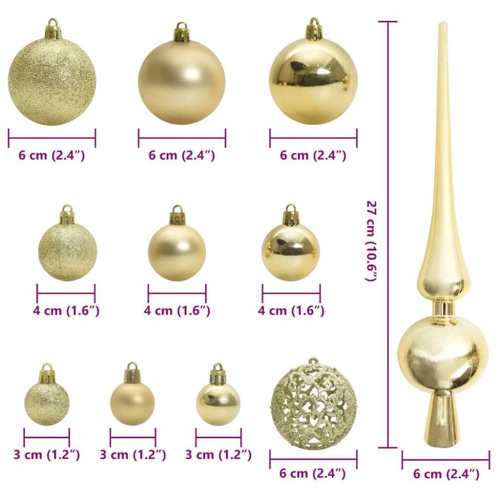 Conjunto de Bolas de Natal com 150 LEDs 61 pcs Ouro Plástico - PORTES GRÁTIS