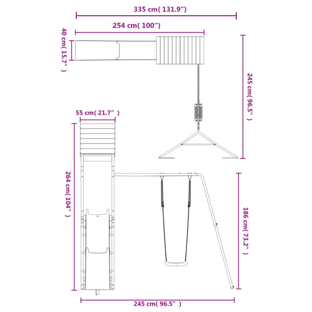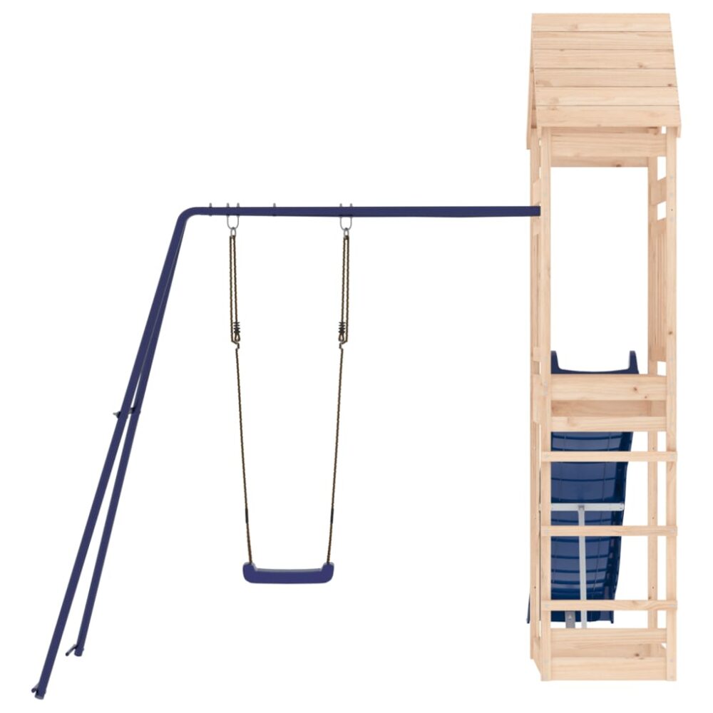 Quer dar às suas crianças a liberdade de poderem brincar em casa? Este conjunto de brincar para exterior em madeira transforma o seu quintal num parque infantil para aventuras imaginativas! Madeira de pinho maciça: esta estrutura de escalar para jardim é feita em madeira de pinho maciça. A madeira de pinho maciça é um bonito material natural. A madeira de pinho possui um grão reto e os nós conferem ao material o seu aspeto rústico.Estrutura robusta e estável: a estrutura de madeira do conjunto de brincar assegura resistência e estabilidade. Para além disso, as pernas em forma de A do baloiço para crianças oferecem equilíbrio.Centros multi-atividades: a estrutura de escalar inclui uma plataforma com 90 cm de altura e destaca-se pelo seu escorrega ondulado, um conjunto individual de baloiço, bem como pela caixa de areia. Os seus pequenitos também podem convidar os seus amigos para se juntarem à diversão.Design bem pensado: os corrimões de madeira circundantes foram concebidos para assegurarem a segurança das crianças durante as suas brincadeiras felizes. Para além disso, o telhado de madeira proporciona sombra às crianças durante os dias quentes de verão.Diversão sem fim: este conjunto de brincar para jardim proporciona imensa diversão e é a forma perfeita das suas crianças e dos seus amigos se divertirem, terem mais tempo para interagir e para criar memórias para eles e para si! Atenção:Apenas para utilização domésticaUtilização ao ar livreNão é adequada para crianças com menos de 3 anos de idadeIdade recomendada do utilizador: 3-8 anos Peso máximo por utilizador: 45 kg Nota:O produto deve ser ancorado para reduzir o perigo de queda. As âncoras não estão incluídas. Útil saber:De forma a tornar a montagem o mais fácil possível, cada produto é entregue com um manual.