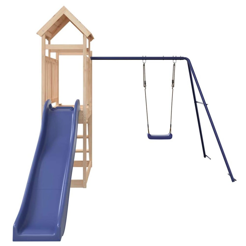 Quer dar às suas crianças a liberdade de poderem brincar em casa? Este conjunto de brincar para exterior em madeira transforma o seu quintal num parque infantil para aventuras imaginativas! Material durável: esta estrutura de escalar com escorrega é feita em madeira de pinho maciça. A madeira de pinho maciça é um bonito material natural. A madeira de pinho possui um grão reto e os nós conferem ao material o seu aspeto rústico.Estrutura robusta e estável: a madeira da estrutura de escalar para jardim assegura robustez e estabilidade. Para além disso, as cordas em forma de A do baloiço para crianças oferecem equilíbrio.Centros multi-atividades: a estrutura de escalar inclui uma plataforma com 90 cm de altura e destaca-se pelo seu escorrega ondulado, pelo conjunto de baloiço, pela escada e pela caixa de areia. Os seus pequenitos também podem convidar os seus amigos para se juntarem à diversão. Design bem pensado: os corrimões de madeira circundantes foram concebidos para assegurarem a segurança das crianças durante as suas brincadeiras felizes. Para além disso, o telhado de madeira proporciona sombra às crianças durante os dias quentes de verão.Diversão sem fim: esta casa de brincar para exterior em madeira proporciona imensa diversão e é a forma perfeita das suas crianças e dos seus amigos se divertirem, terem mais tempo interativo e criarem memórias para eles e para si! Atenção:Apenas para utilização domésticaUtilização ao ar livre Não é adequada para crianças com menos de 3 anos de idade Idade recomendada do utilizador: 3-8 anos Peso máximo por utilizador: 45 kg Nota:O produto deve ser ancorado para reduzir o perigo de queda. As âncoras não estão incluídas. Útil saber:De forma a tornar a montagem o mais fácil possível, cada produto é entregue com um manual.