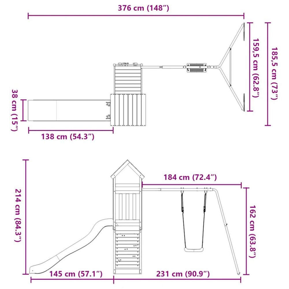 Quer dar às suas crianças a liberdade de poderem brincar em casa? Este conjunto de brincar para exterior em madeira transforma o seu quintal num parque infantil para aventuras imaginativas! Material durável: esta estrutura de escalar com escorrega é feita em madeira de douglas maciça. A madeira de douglas maciça é uma madeira altamente durável que se adapta bem em ambientes exteriores. A madeira de douglas é ainda forte e requer pouca manutenção, mesmo durante a ação das intempéries.Estrutura robusta e estável: a madeira da estrutura do conjunto de brincar para jardim assegura robustez e estabilidade. Para além disso, as pernas em forma de A do baloiço para crianças oferecem equilíbrio.Centros multi-atividades: a estrutura de escalar inclui uma plataforma com 90 cm de altura e destaca-se pela sua parede de escalar, escorrega ondulado, conjunto individual de baloiço, bem como pela caixa de areia. Os seus pequenitos também podem convidar os seus amigos para se juntarem à diversão.Design bem pensado: os corrimões de madeira circundantes foram concebidos para assegurarem a segurança das crianças durante as suas brincadeiras felizes. Para além disso, o telhado de madeira proporciona sombra às crianças durante os dias quentes de verão.Diversão sem fim: esta casa de brincar para exterior em madeira proporciona imensa diversão e é a forma perfeita das suas crianças e dos seus amigos se divertirem, terem mais tempo interativo e criarem memórias para eles e para si! Atenção:Apenas para utilização domésticaUtilização ao ar livreNão é adequada para crianças com menos de 3 anos de idadeIdade recomendada do utilizador: 3-8 anosPeso máximo por utilizador: 45 kg Nota:O produto deve ser ancorado para reduzir o perigo de queda. As âncoras não estão incluídas. Útil saber:De forma a tornar a montagem o mais fácil possível, cada produto é entregue com um manual.