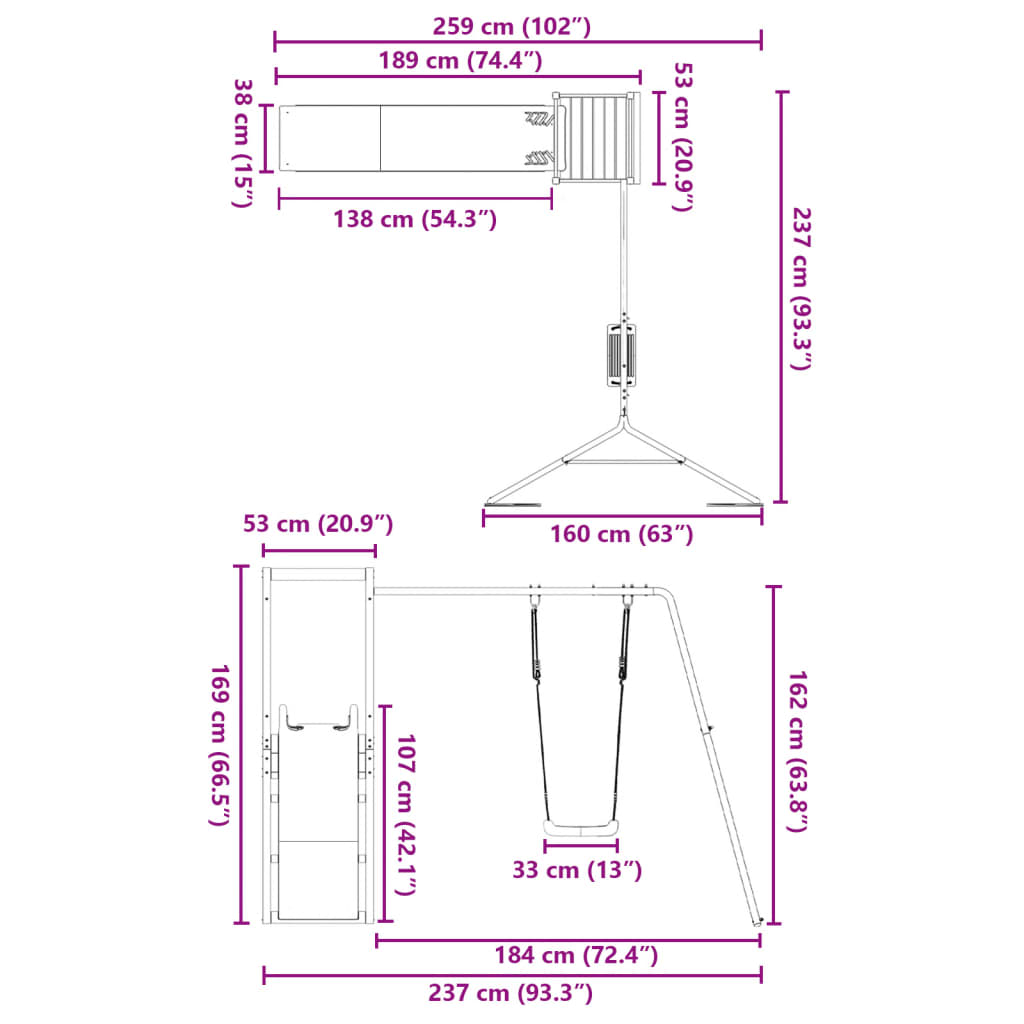 Quer dar às suas crianças a liberdade de poderem brincar em casa? Este conjunto de brincar para exterior em madeira transforma o seu quintal num parque infantil para aventuras imaginativas! Madeira de douglas maciça: esta estrutura de escalar para jardim é feita em madeira de douglas maciça. A madeira de douglas maciça é uma madeira altamente durável que se adapta bem em ambientes exteriores. A madeira de douglas é ainda forte e requer pouca manutenção, mesmo durante a ação das intempéries.Estrutura robusta e estável: a madeira da estrutura de brincar para jardim assegura robustez e estabilidade.Centros multi-atividades: a estrutura de escalar inclui uma plataforma com 90 cm de altura e destaca-se pelo seu conjunto individual de baloiço, escorrega ondulado, bem como pela caixa de areia. Os seus pequenitos também podem convidar os seus amigos para se juntarem à diversão.Design bem pensado: os corrimões de madeira circundantes foram concebidos para assegurarem a segurança das crianças durante as suas brincadeiras felizes.Diversão sem fim: esta casa de brincar para exterior em madeira proporciona imensa diversão e é a forma perfeita das suas crianças e dos seus amigos se divertirem, terem mais tempo interativo e criarem memórias para eles e para si! Atenção:Apenas para utilização domésticaUtilização ao ar livreNão é adequada para crianças com menos de 3 anos de idadeIdade recomendada do utilizador: 3-8 anosPeso máximo por utilizador: 45 kg Nota:O produto deve ser ancorado para reduzir o perigo de queda. As âncoras não estão incluídas. Útil saber:De forma a tornar a montagem o mais fácil possível, cada produto é entregue com um manual.